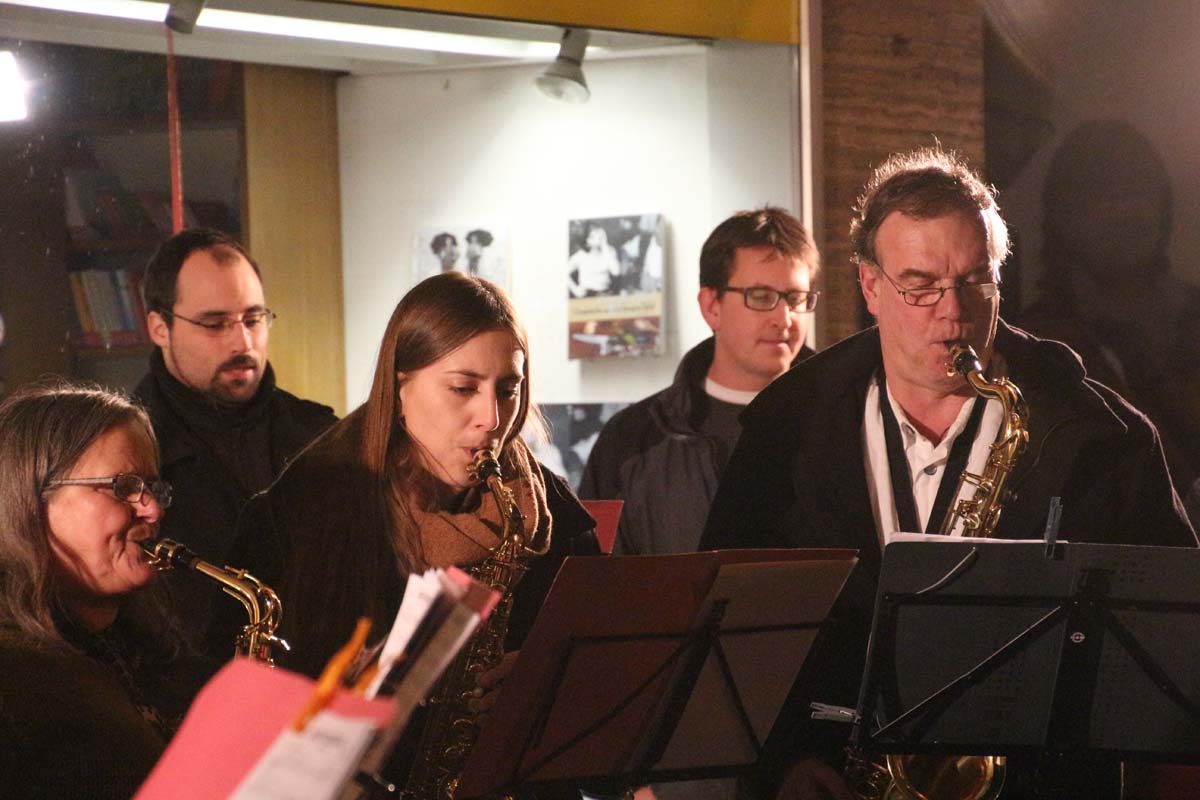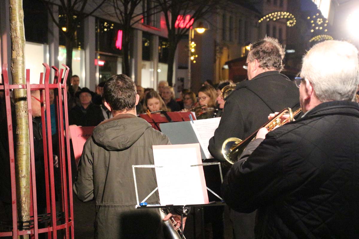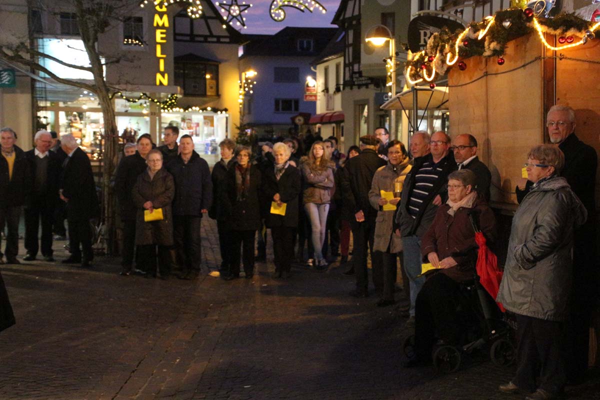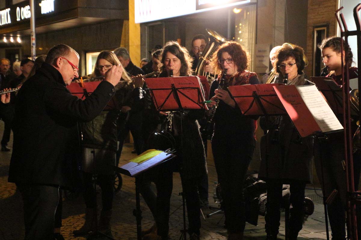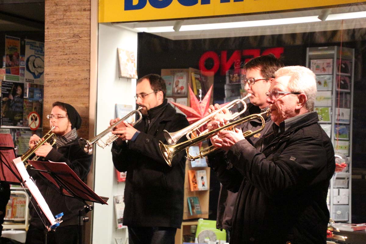 IMG_7143(cr) Keine Weihnacht ohne die Stadtkapelle Sinsheim. Dies hat einfach eine Tradition. Und so trifft sich die Bevölkerung doch gerne zum gemeinsamen Singen von Weihnachtsliedern. Das muss man den Musikern der Stadtkapelle mehr als hoch anrechnen, sie opfern ein wenig ihrer Freizeit um einfach Weihnachtsfreude zu verbreiten. NAtürlich darf auch ein wenig Glühwein nicht fehlen und dafür sorgte sich die Buchhandlung Doll. Einen riesen Dank für diese tolle Tradition.
