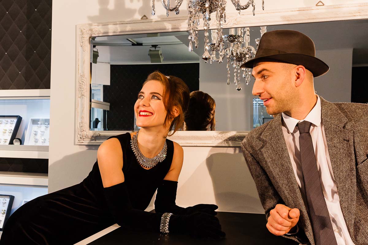 Laut Benszuweit ist Capotes Klassiker, der mit Audrey Hepburn in der Hauptrolle verfilmt wurde und Kultstatus besitzt, noch nicht lange auf Theaterbühnen zu sehen: „Die Uraufführung fand 2013 in einer Fassung von Richard Greenberg am Broadway statt und seit Anfang 2014 gibt es auch eine deutsche Textfassung, deren erste Aufführung 2014 als Freilichtproduktion in Ludwigsburg stattfand. Wir sind also eines der ersten Theater der Republik, die sich an Hollys Geschichte heranwagen. Als ich vor anderthalb Jahren die Textfassung entdeckte, benötigte ich bei Intendant Carsten Ramm keine großen Überredungskünste, Frühstück bei Tiffany auf die Bühne zu bringen. Auch die Arbeit auf den Proben macht allen Beteiligten gerade sehr viel Spaß und wir freuen uns auf die Premiere!“ Benszuweit erklärt, dass sich die Filmversion und die Bühnenfassung in einigen wesentlichen Punkten unterscheiden. „Wer eine Kopie des Filmes erwartet, wird verwundert sein. Das Drehbuch war sowohl eine eigene Interpretation von Capotes Stoff als auch der strengen Hollywood-Zensur unterworfen. Die Theaterfassung aber basiert auf Capotes Roman und wir entdeckten in ihr viele spannende Aspekte und Deutungen, die ihren Weg nicht auf die Leinwand gefunden haben. Beispielsweise unterscheidet sich Capotes Erzählerfigur Fred stark von der Rolle des Fred im Film. Ich denke, dass unser Fred, gespielt von Cornelius Danneberg, ein weit sympathischerer Charakter ist als der männliche Hauptdarsteller der Kinoversion.“ Dennoch hat die Verfilmung auch Spuren in Ramms Inszenierung hinterlassen: „Auf Henry Mancinis großartige Komposition wollten wir nicht verzichten. Wer Moon River mag, darf sich also freuen.“ Die BLB bleibt bei ihrer Bühnenfassung der Entstehungszeit des Romans treu. „Wir haben keine Modernisierung vorgenommen. Der Zuschauer wird also in die Zeit Ende der 50er Jahre entführt, deren Musik und Mode sehr reizvoll ist. Außerdem wird ein beliebtes und bekanntes Gesicht unseres Theaters in die Rolle der Holly schlüpfen. Nämlich Kathrin Berg, die 2015 den Förderpreis des Freundeskreises der Badischen Landesbühne erhielt, der für besonders herausragende schauspielerische Leistungen verliehen wird“, verriet Benszuweit.