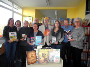 (zg) Die Arbeit unseres Fördervereins ISbN, der uns seit mehreren Jahren tatkräftig finanziell unterstützt, zeigte erneut Erfolge: Vor einigen Tagen konnten wir in unserer Stadtbibliothek Bücher im Werte von rund 3000 Euro übernehmen. Diese Summe hatte uns der Verein gespendet. Wir haben für dieses Geld besonders Jugendbücher, aber auch Romane für Erwachsene beschafft. Bürgermeisterin Tanja Grether und Bibliotheksleiter Herbert Hauck bedankten sich anlässlich dieser Übergabe im Kreise einiger ehrenamtlicher Mitarbeiter herzlich beim ISbN-Vorstand. Gesammelt wurde das Geld vor allem aus Mitgliedsbeiträgen und Spenden, die durch populärwissenschaftliche Vorträge, Bücherflohmärkte und das regelmäßig geöffnete Bücherzimmer im früheren Rathaus erwirtschaftet wurden. In dieser gemütlichen Bücherstube kann man Bücher lesen und gegen Spende erwerben und dabei unter rund 7000 Werken wählen.
