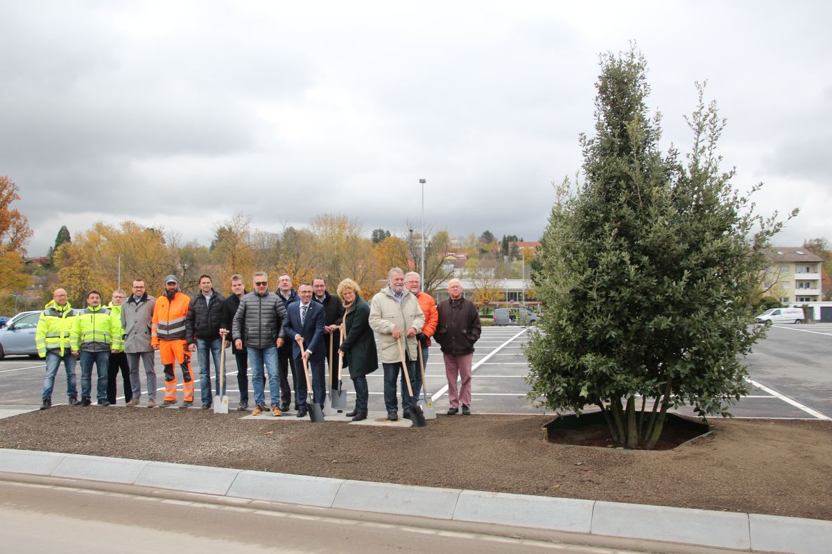 Feierlich begangen wurde das Ende der Baumaßnahmen mit einer symbolischen Baumpflanzung. Oberbürgermeister Jörg Albrecht, die städtischen Dezernatsleiter, Amtsleiter und Mitarbeiter der Stadt sowie Vertreter des Gemeinderats und der beteiligten Baufirma und des Planungsbüros setzten eine Steineiche. Der Festplatz wird rundum begrünt, dabei setzt die Stadt auf mediterrane, winterharte Pflanzen.
