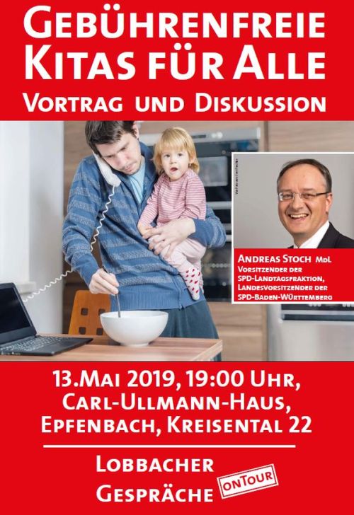 Schon als Kultusminister in der Regierungszeit 2011 bis 2016 lag Andreas Stoch daran, die frühkindliche Bildung im Land auszubauen und eine familienfreundliche Politik erfolgreich voranzutreiben. Jetzt geht es darum, die Kitas in Baden-Württemberg gebührenfrei zu machen – wie in anderen Bundesländern auch. Unter dem Motto „Aufbruch für Baden-Württemberg: Gebührenfreiheit gehört dazu“ wird Stoch darlegen, dass die Schaffung von Kita-Plätzen, Qualitätsverbesserungen in den Einrichtungen und die Gebührenfreiheit kein Widerspruch sind, sondern zusammen gehören.