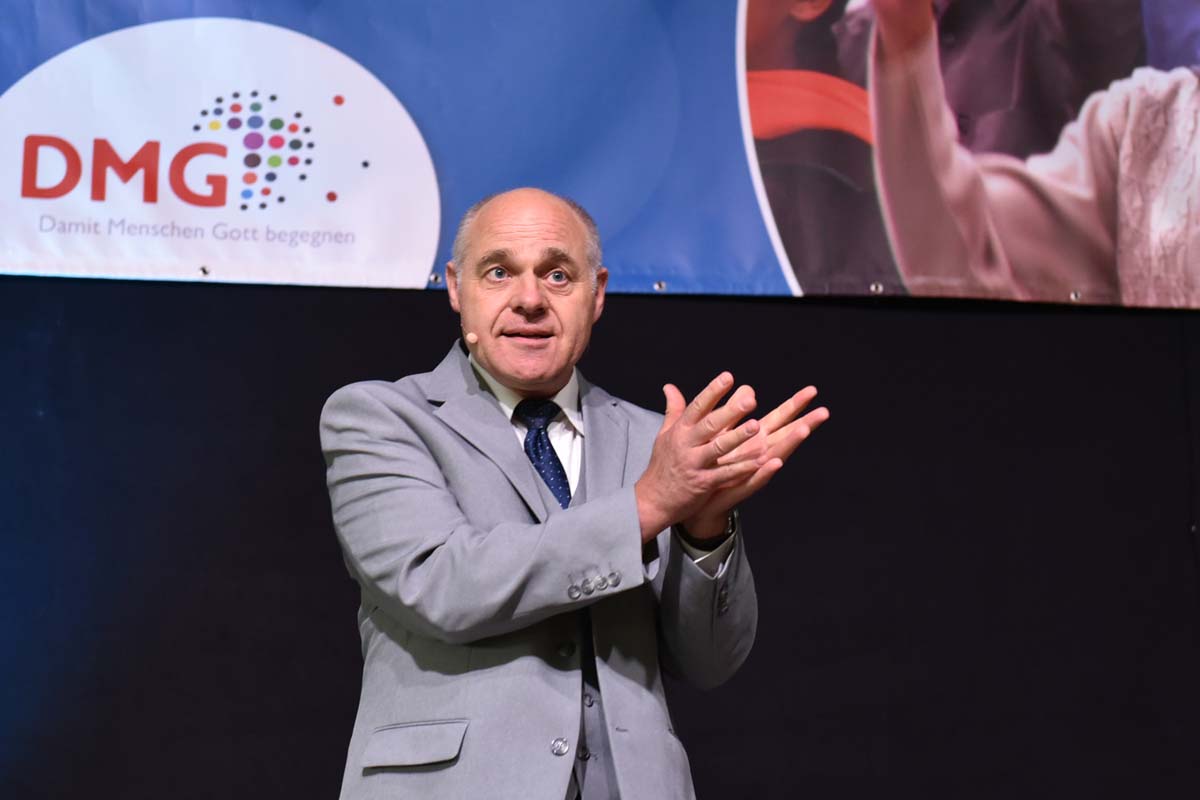„Mission beugt Fluchtgründen vor!“ Diese Ansicht äußerte der Direktor der DMG, Dr. Detlef Blöcher in seiner Ansprache: „In vielen Ländern gibt es extremes Elend, Bürgerkrieg und Gewalt. Hoffnungslosigkeit treibt Menschen dazu, ihre Heimat zu verlassen, und mit Hilfe von Schleppern die riskante Überfahrt zu wagen.“ Heute sei es nötiger denn je, Missionare und christliche Entwicklungshelfer zu entsenden. Die 350 aus Sinsheim entsandten Mitarbeiter der DMG seien Hoffnungsträger: „Sie bauen Schulen, helfen medizinisch, unterstützen Randgruppen, geben Frauen Würde und bringen die Botschaft der Liebe Gottes.“ Das gibt den Menschen Hoffnung für ihr Leben vor Ort.