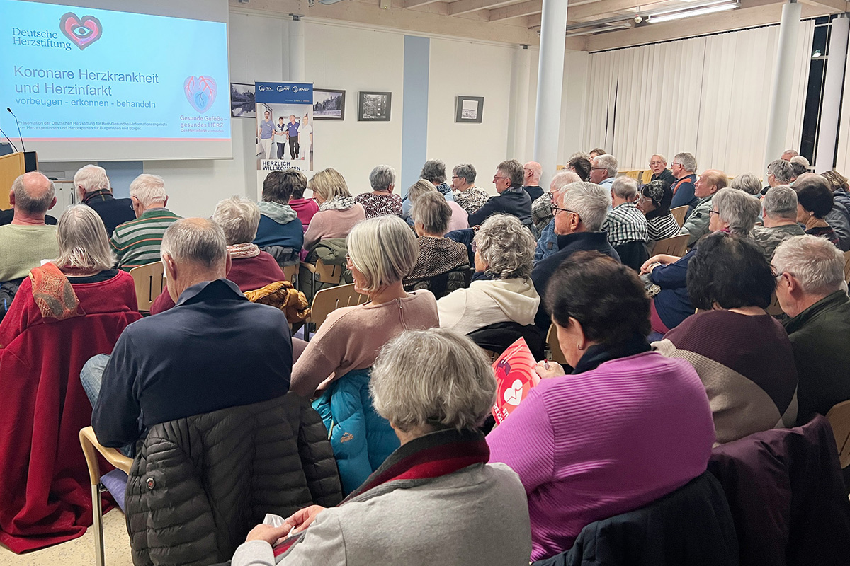Volles Haus im Casino der GRN-Klinik Sinsheim: Zahlreiche Besucherinnen und Besucher informierten sich bei der Veranstaltung „Gesunde Gefäße – gesundes Herz: Den Herzinfarkt vermeiden“ über koronare Herzkrankheit (KHK) und Herzinfarkt, die häufigsten Todesursachen in Deutschland.