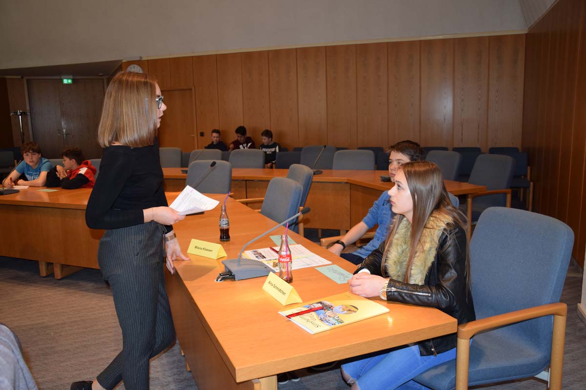 Das Tagesprogramm für die Schüler war informativ und abwechslungsreich. Auf individuelle Fragen und Erläuterungen konnte eingegangen werden. Eine Rathausrallye führte sie durch das Verwaltungsgebäude in der Wilhelmstraße bevor am Nachmittag ein Besuch bei der Feuerwehr und bei den Stadtwerken folgte.