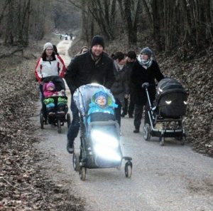 Um 17 Uhr sind wir schwer beladen mit dem Bollerwagen und 30 Erwachsenen und 25 Kindern – vielleicht waren es auch mehr – die Mühlstraße hoch gelaufen, bis wir beim Lager angekommen waren.