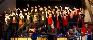 Der Chor wird instrumental begleitet mit Geige, Banjo, Keyboard, Percussion, Bass und Gitarre. Der Gospelgottesdienst in Reihen am 21. März beginnt um 19.00 Uhr. Am Ausgang wird um eine Spende gebeten. (Bild: Rudi Quenzer)