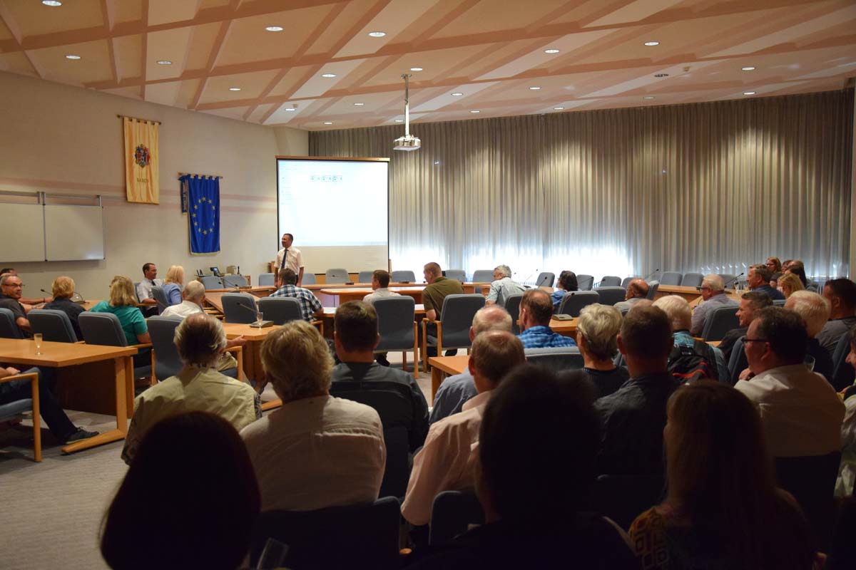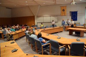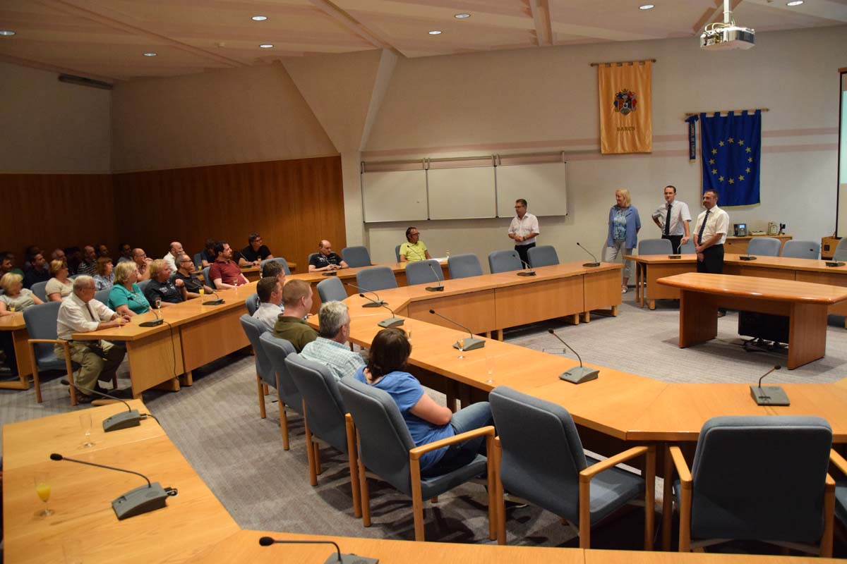 (zg) Oberbürgermeister Jörg Albrecht durfte am vergangenen Donnerstag Mitarbeiter der Gemeindeprüfungsanstalt Baden-Württemberg (GPA) mit Ihrem Präsidenten Herrn Prof. Klaus Notheis im Rahmen Ihres Jahresausflugs im Sitzungsaal der Stadt Sinsheim willkommen heißen. Nach einer kurzen Begrüßung seitens Herrn Albrechts und Herrn Notheis durften die Mitarbeiter der GPA erste Eindrücke der Stadt Sinsheim, den dazugehörigen Stadtteilen und deren Sehenswürdigkeiten anhand eines Imagefilms sammeln, ehe der Morgen mit einem Stehempfang im Rathaus abgerundet wurde. Für die Mitarbeiter der GPA ging es danach in zwei Gruppen wahlweise zu einer Führung auf die Burg Steinsberg oder in das Auto & Technik Museum Sinsheim. Den Abschluss machte die Gemeindeprüfungsanstalt im Brauhaus Jupiter.