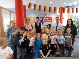 Keine Frage, die 14 Schulanfänger waren mit großer Begeisterung bei der Sache, hörten genau zu und fragten alles, was sie interessiert. Schließlich schauten sie zum ersten Mal hinter die Kulissen der Sparkasse Kraichgau. Und nach dem vielen Zuhören und allen Fragen bekamen sie noch Gummibärchen, Stirnband, Taschenlampe, KNAX- Urkunde und Spielgeld mit auf den Heimweg.
