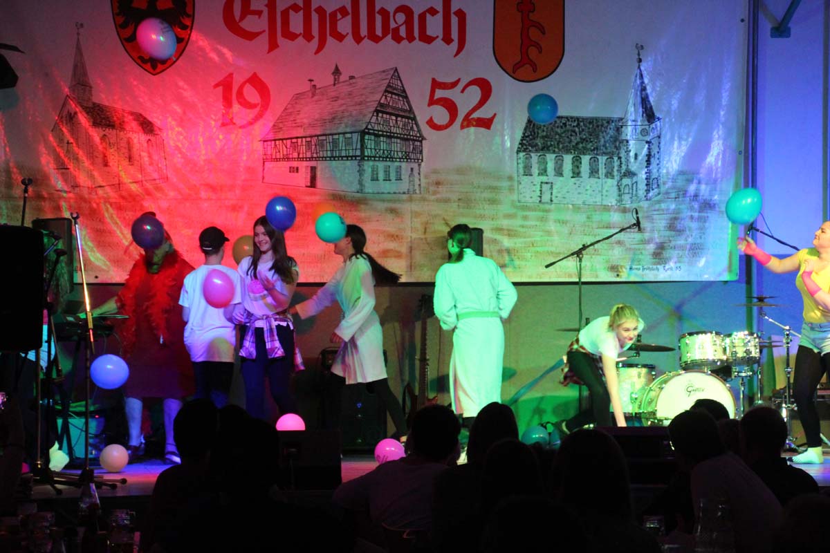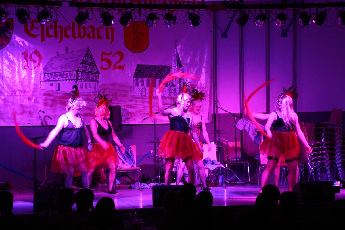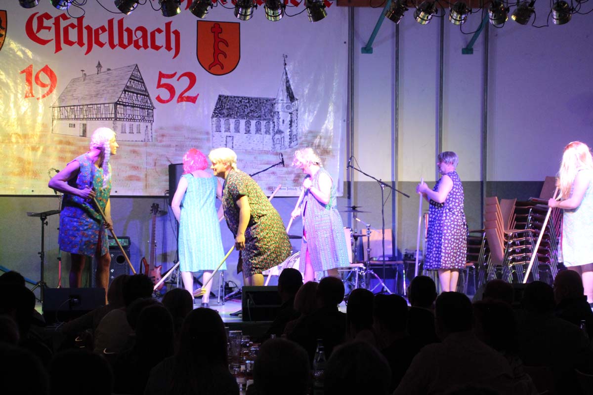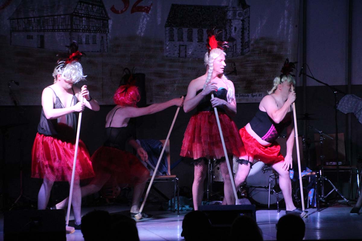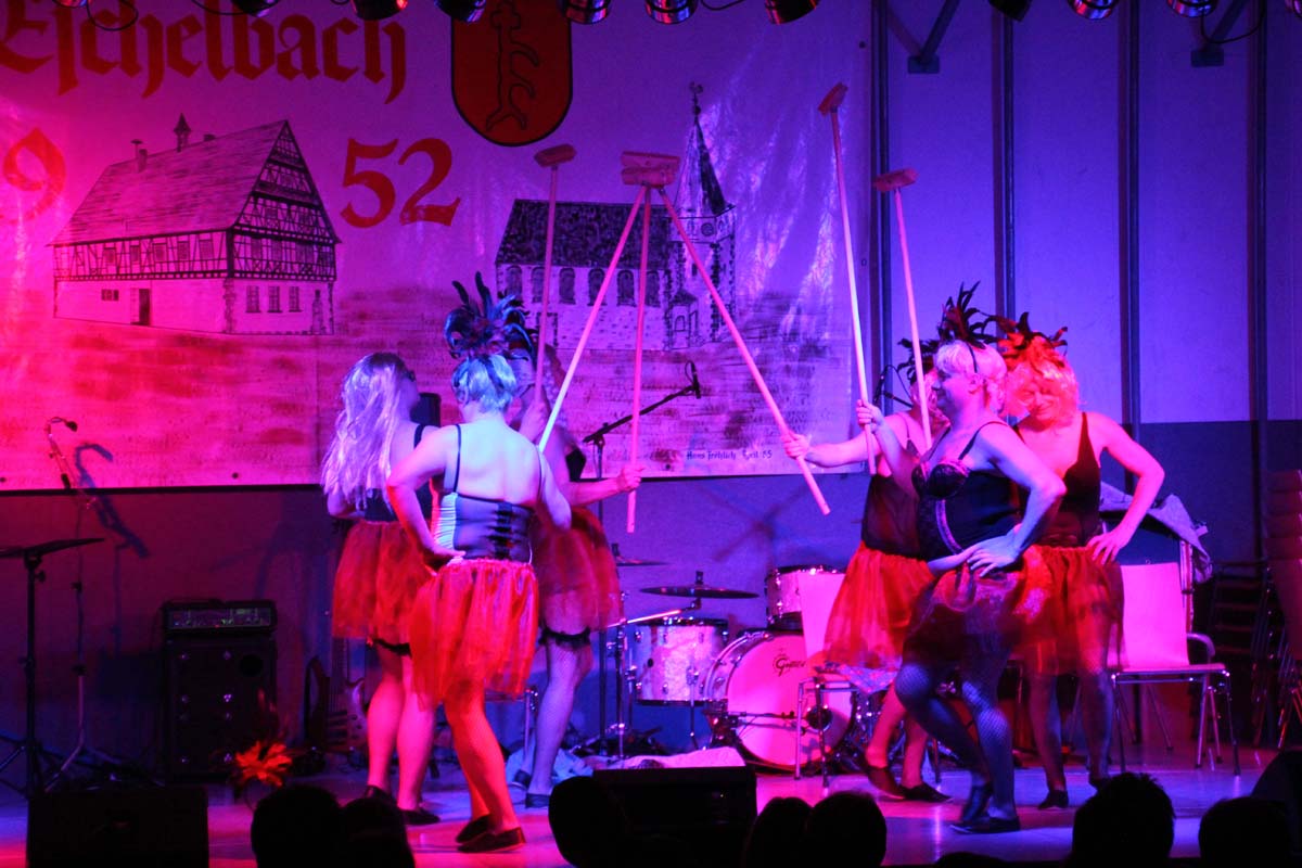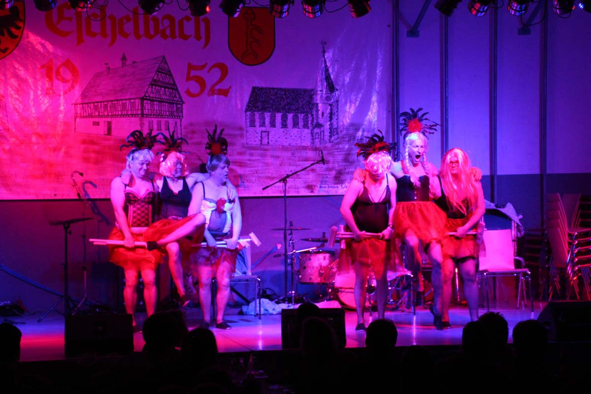 Das erste Highlight folgte mit der Eschelbacher Tagesschau, lokale Nachrichten des vergangenen Jahres gespickt mit witzigen Bildern und Kommentaren. Nach einer kurzen Pause folgte die wohl aussergewöhnlichste Hitparade. Hier hatte sich der Musikverein wirklich richtig was einfallen lassen. Hier musste sich am Ende das fantastische Männerballett den Blockflötenfrauen mit ihrem Heissluftgebläse geschlagen geben. Denn ihre AC/DC Einlage war einfach unschlagbar. Aber auch alle anderen Teilnehmer der Hitparade lieferten eine grossartige Show. Unter allen Teilnehmern zur Abstimmung des Hitparadenergebnis wurden neun tolle Preise ausgelost.