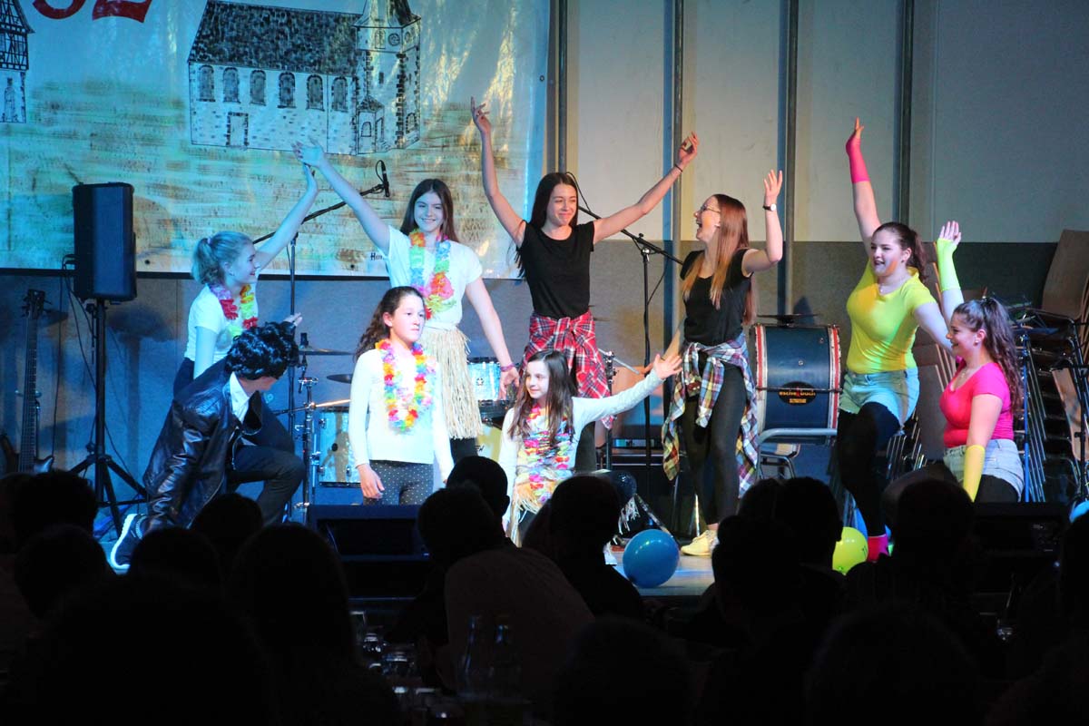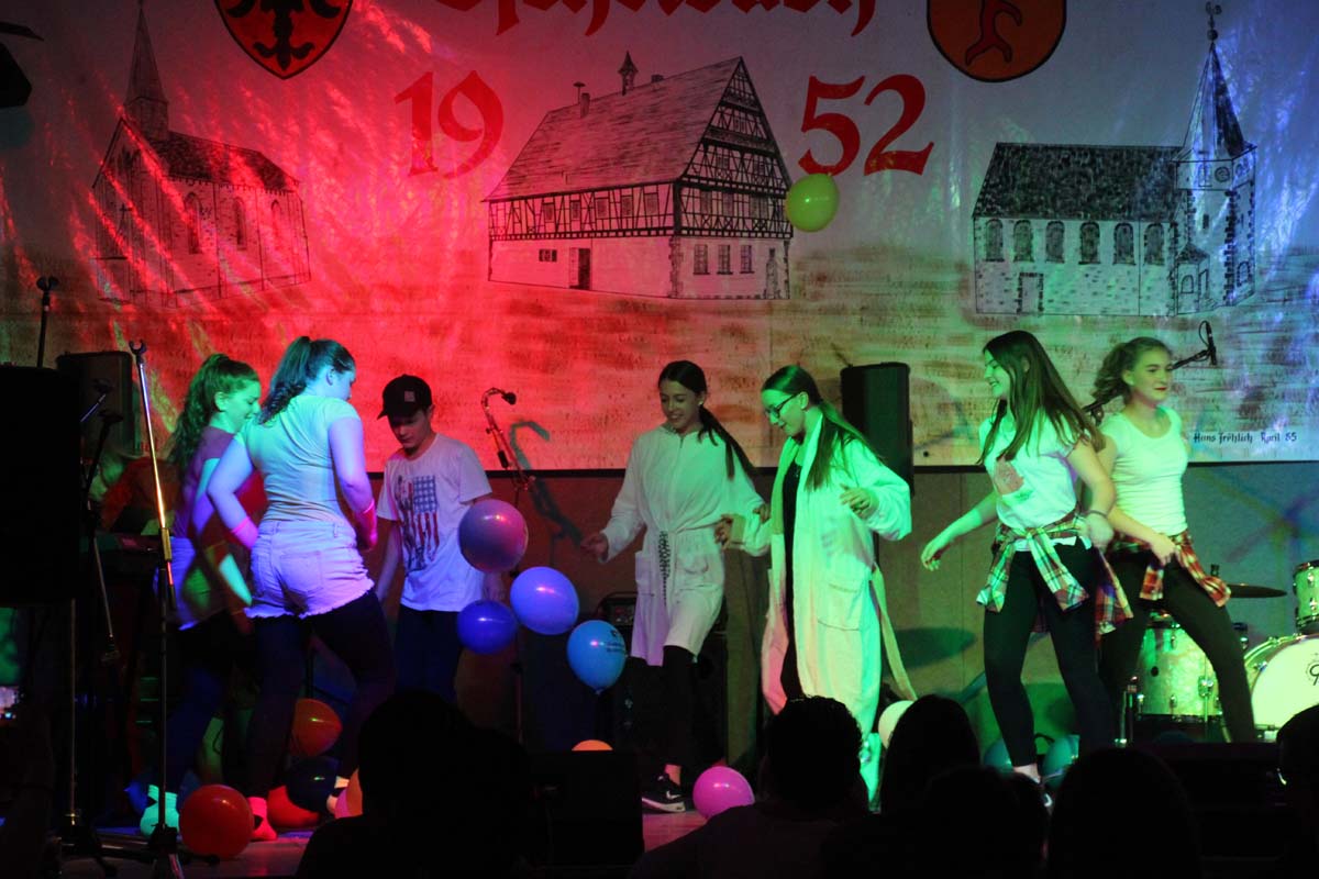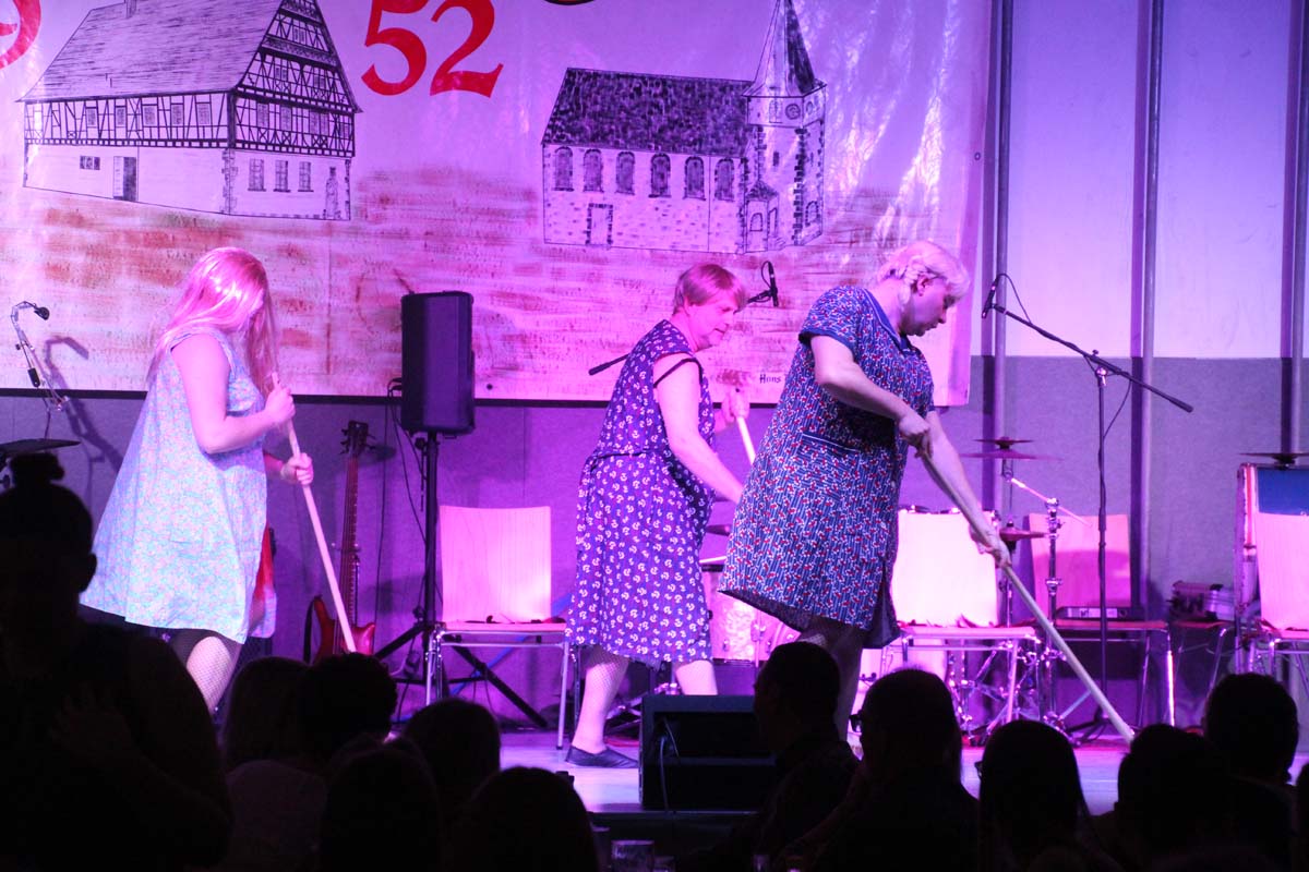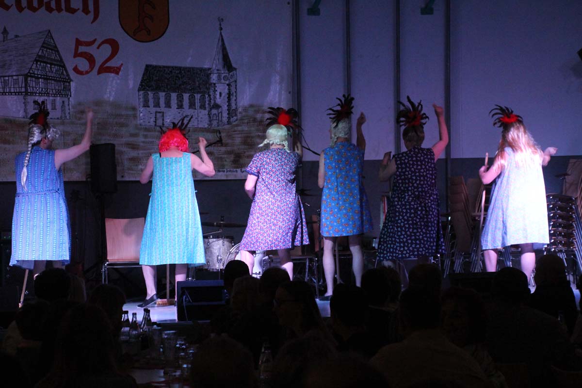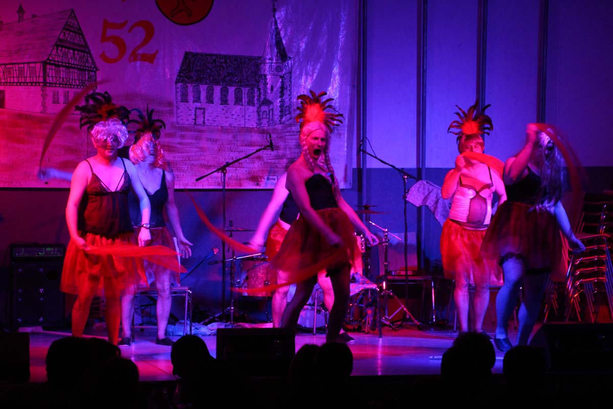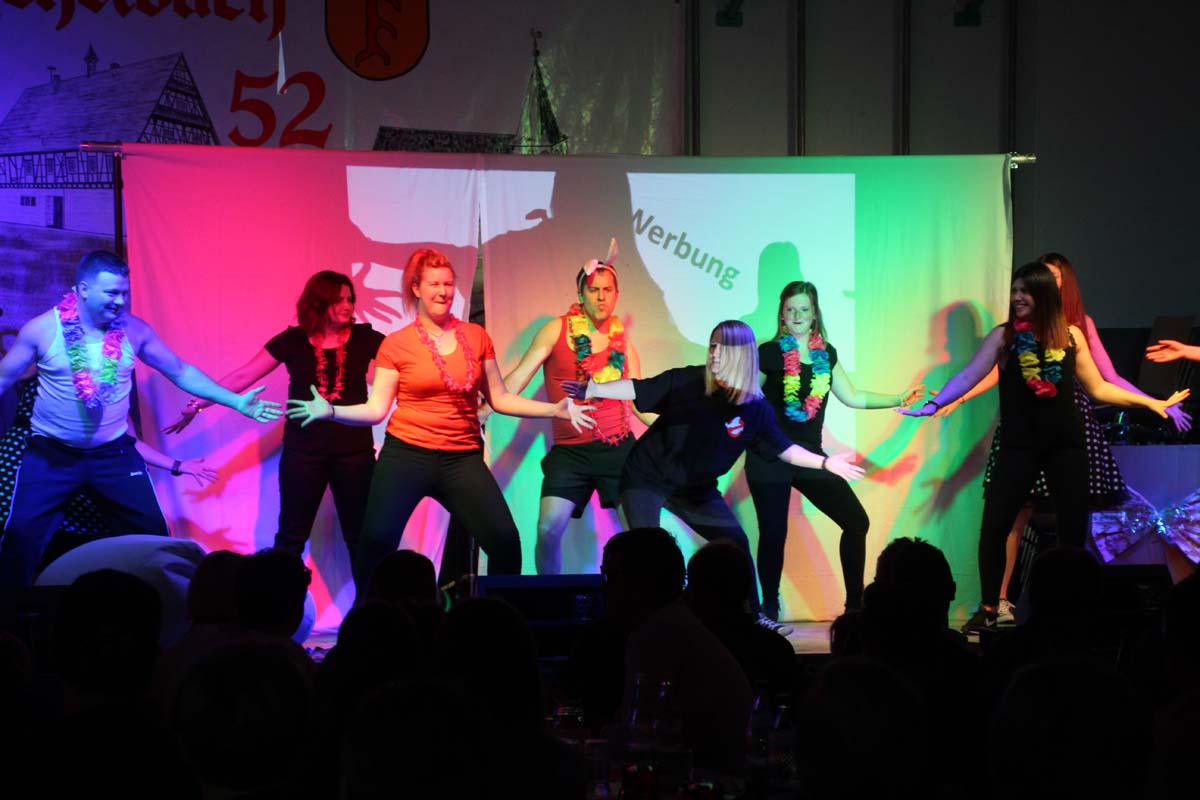 Das erste Highlight folgte mit der Eschelbacher Tagesschau, lokale Nachrichten des vergangenen Jahres gespickt mit witzigen Bildern und Kommentaren. Nach einer kurzen Pause folgte die wohl aussergewöhnlichste Hitparade. Hier hatte sich der Musikverein wirklich richtig was einfallen lassen. Hier musste sich am Ende das fantastische Männerballett den Blockflötenfrauen mit ihrem Heissluftgebläse geschlagen geben. Denn ihre AC/DC Einlage war einfach unschlagbar. Aber auch alle anderen Teilnehmer der Hitparade lieferten eine grossartige Show. Unter allen Teilnehmern zur Abstimmung des Hitparadenergebnis wurden neun tolle Preise ausgelost.