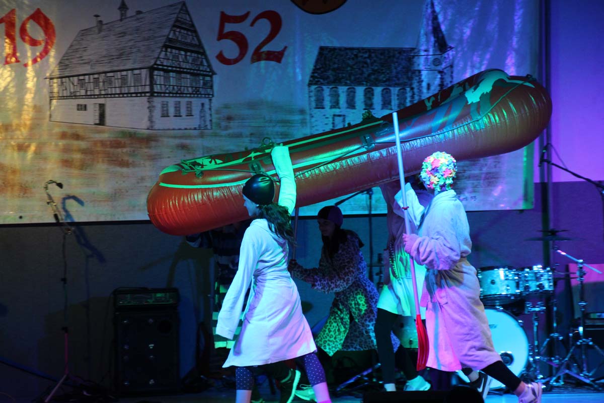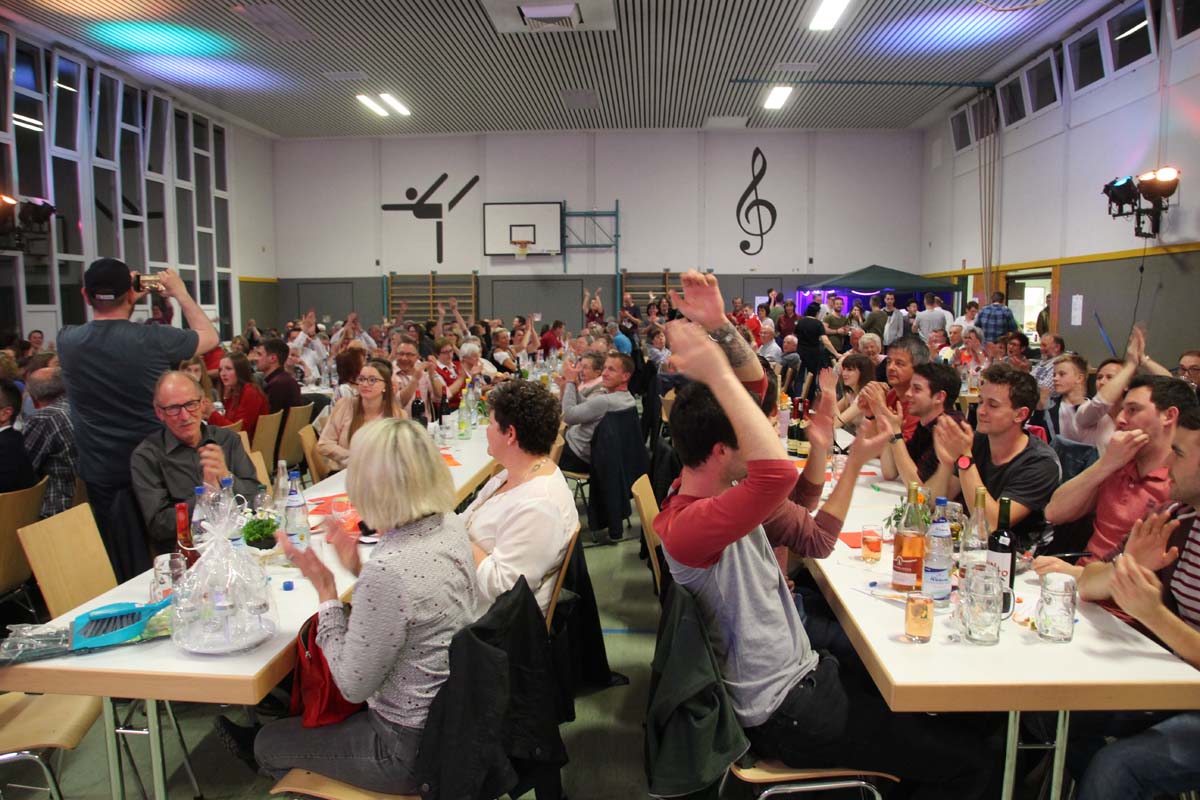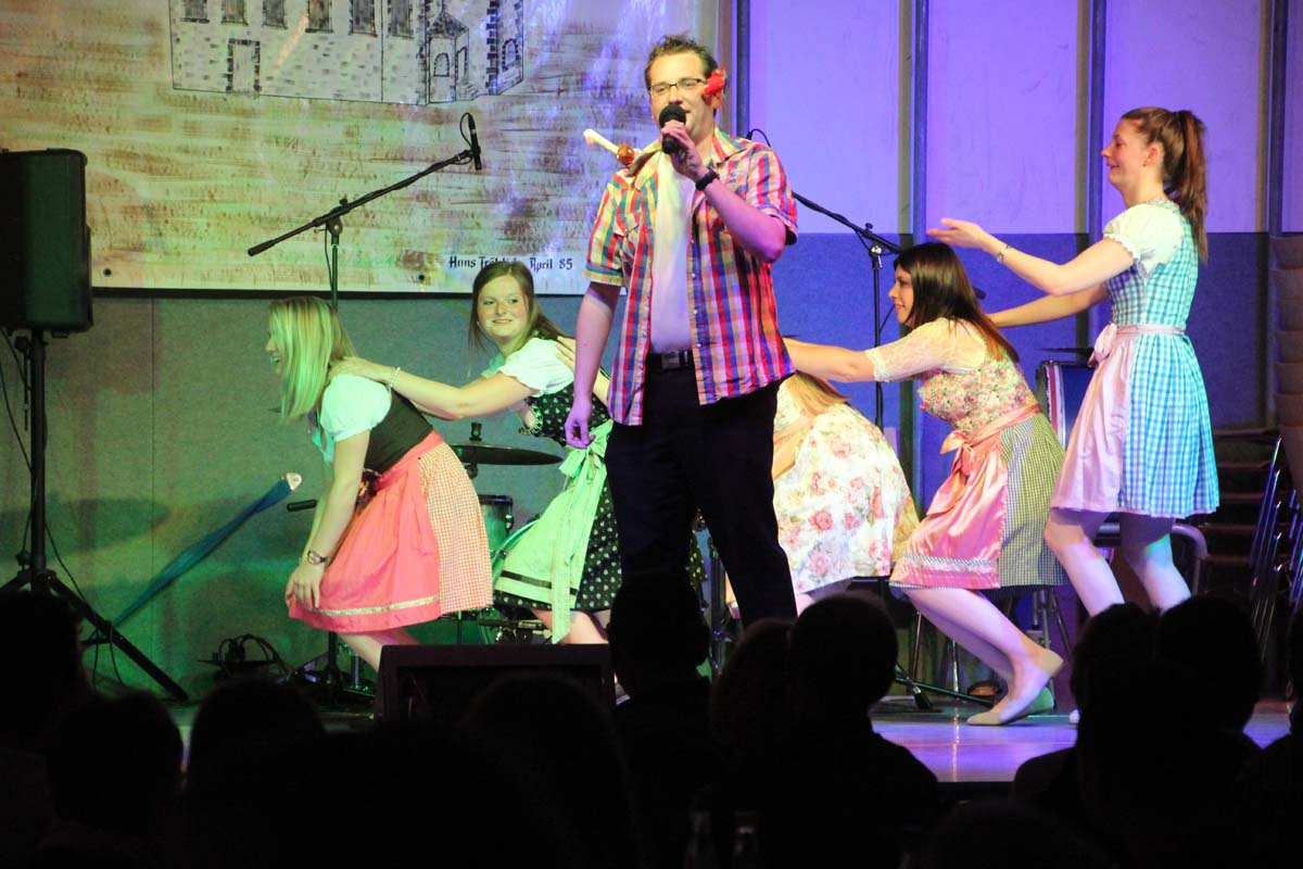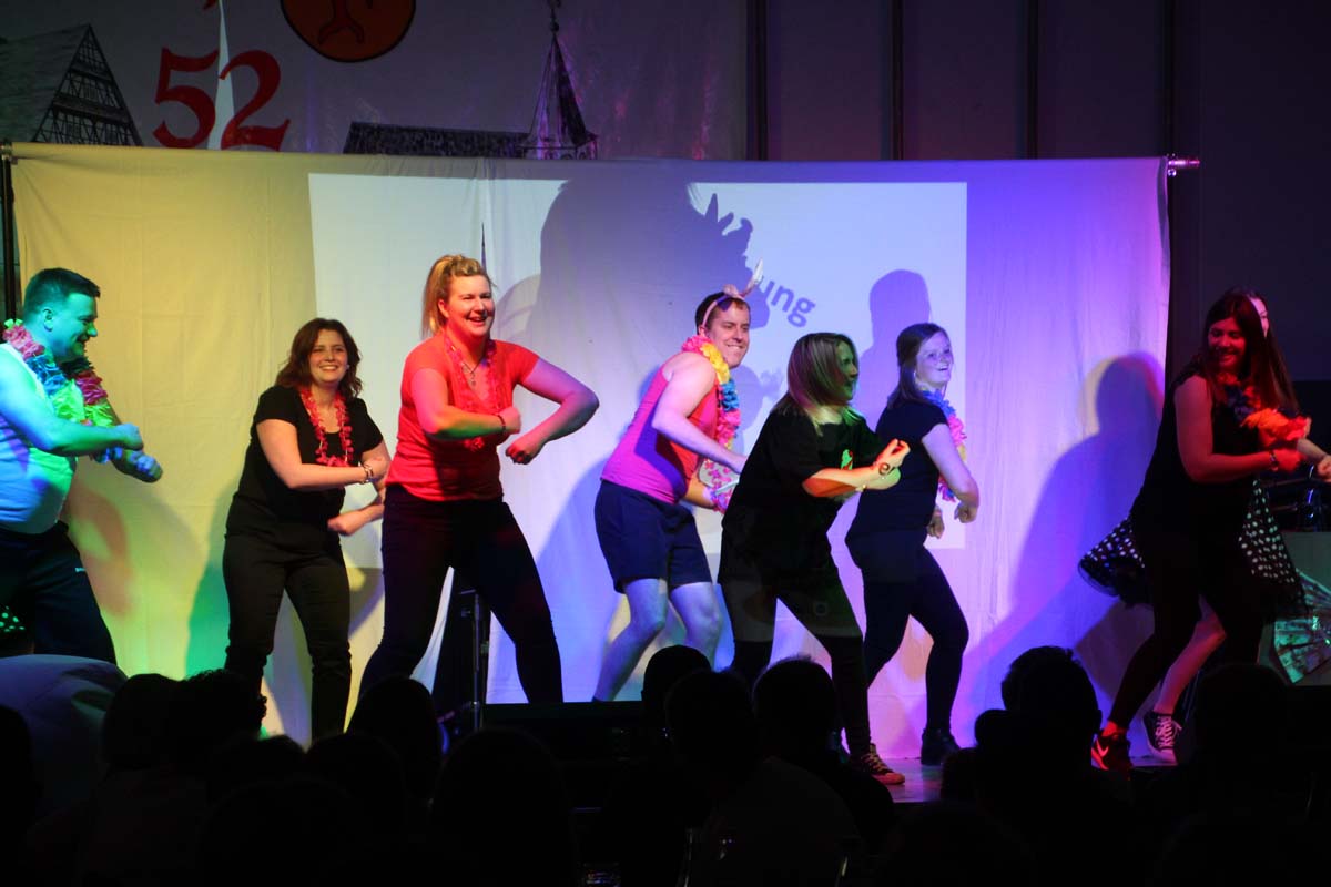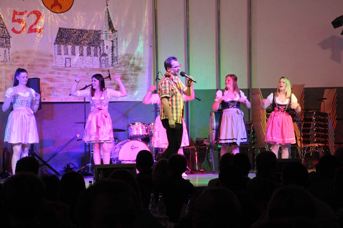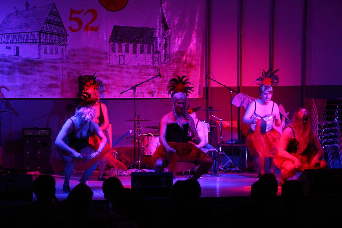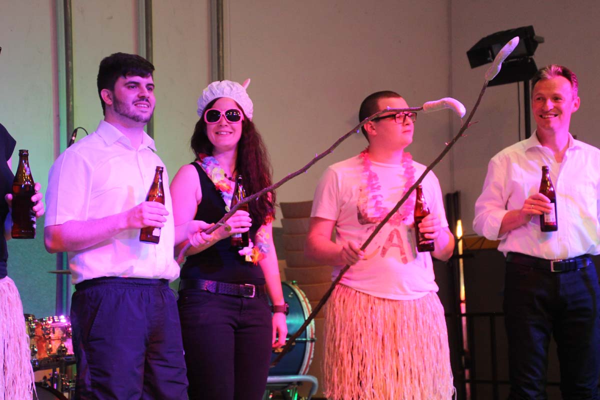 Das erste Highlight folgte mit der Eschelbacher Tagesschau, lokale Nachrichten des vergangenen Jahres gespickt mit witzigen Bildern und Kommentaren. Nach einer kurzen Pause folgte die wohl aussergewöhnlichste Hitparade. Hier hatte sich der Musikverein wirklich richtig was einfallen lassen. Hier musste sich am Ende das fantastische Männerballett den Blockflötenfrauen mit ihrem Heissluftgebläse geschlagen geben. Denn ihre AC/DC Einlage war einfach unschlagbar. Aber auch alle anderen Teilnehmer der Hitparade lieferten eine grossartige Show. Unter allen Teilnehmern zur Abstimmung des Hitparadenergebnis wurden neun tolle Preise ausgelost.