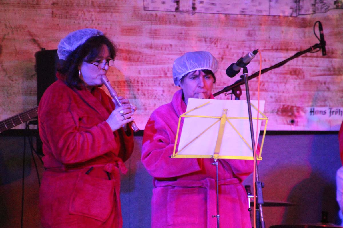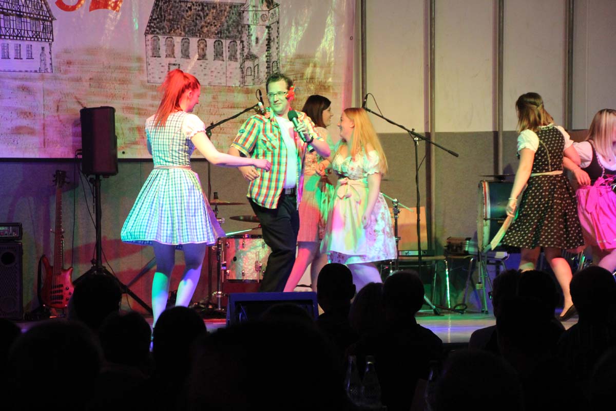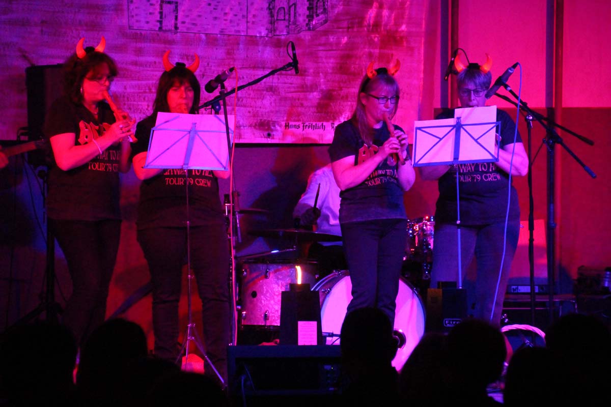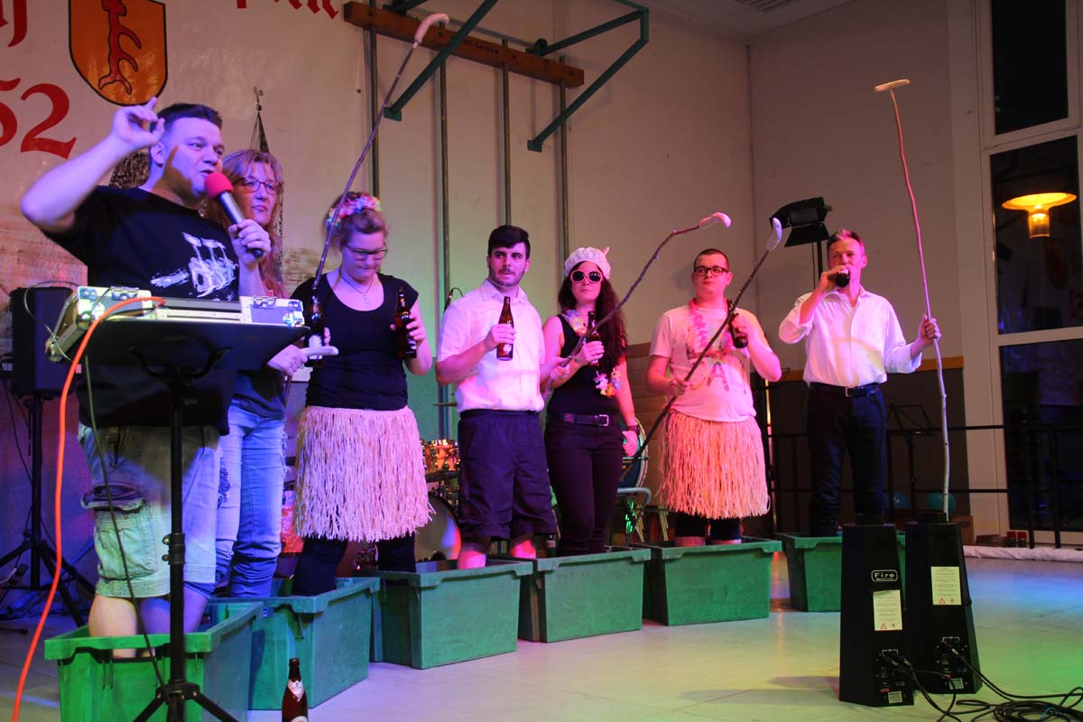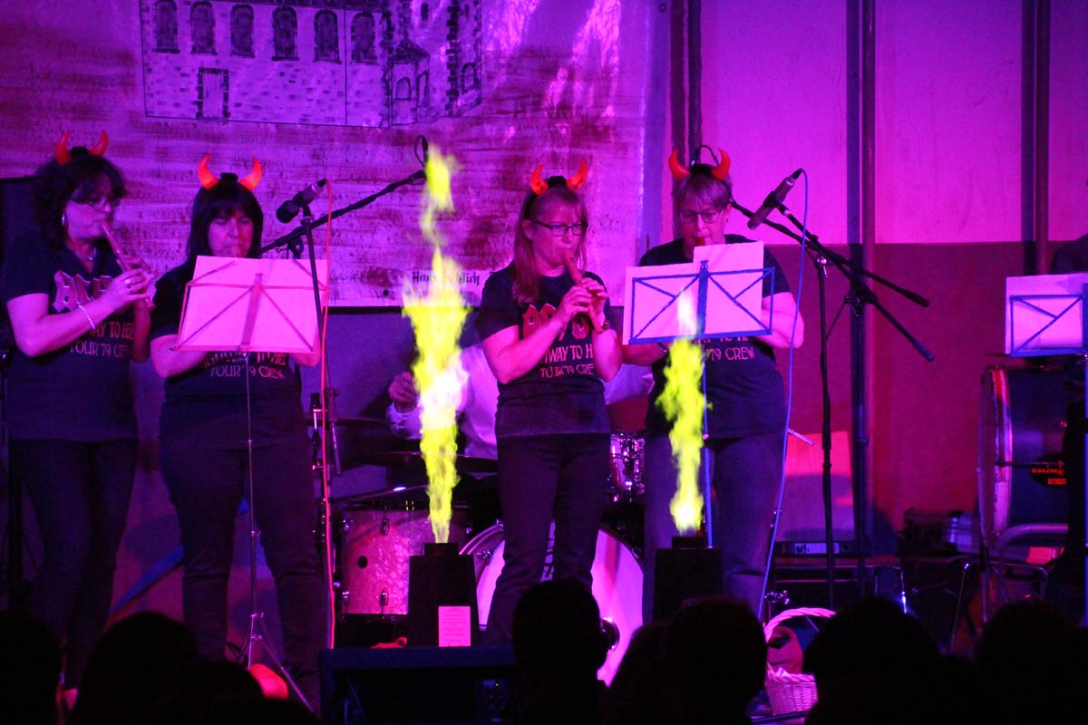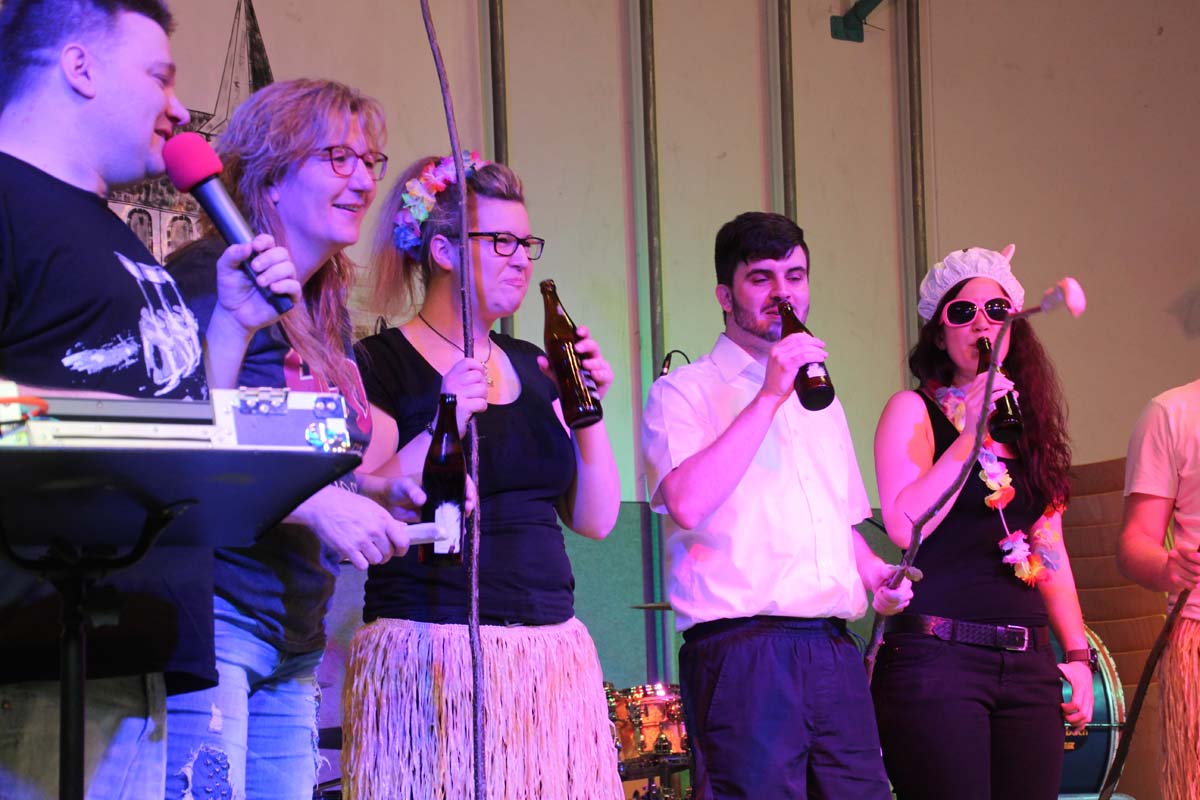 Das erste Highlight folgte mit der Eschelbacher Tagesschau, lokale Nachrichten des vergangenen Jahres gespickt mit witzigen Bildern und Kommentaren. Nach einer kurzen Pause folgte die wohl aussergewöhnlichste Hitparade. Hier hatte sich der Musikverein wirklich richtig was einfallen lassen. Hier musste sich am Ende das fantastische Männerballett den Blockflötenfrauen mit ihrem Heissluftgebläse geschlagen geben. Denn ihre AC/DC Einlage war einfach unschlagbar. Aber auch alle anderen Teilnehmer der Hitparade lieferten eine grossartige Show. Unter allen Teilnehmern zur Abstimmung des Hitparadenergebnis wurden neun tolle Preise ausgelost.