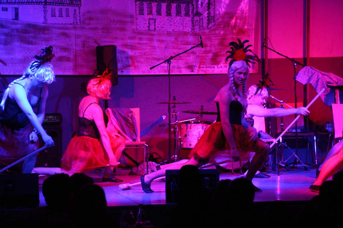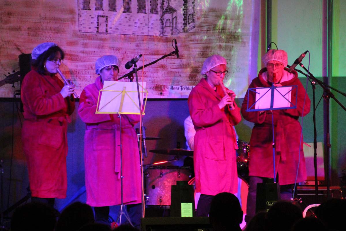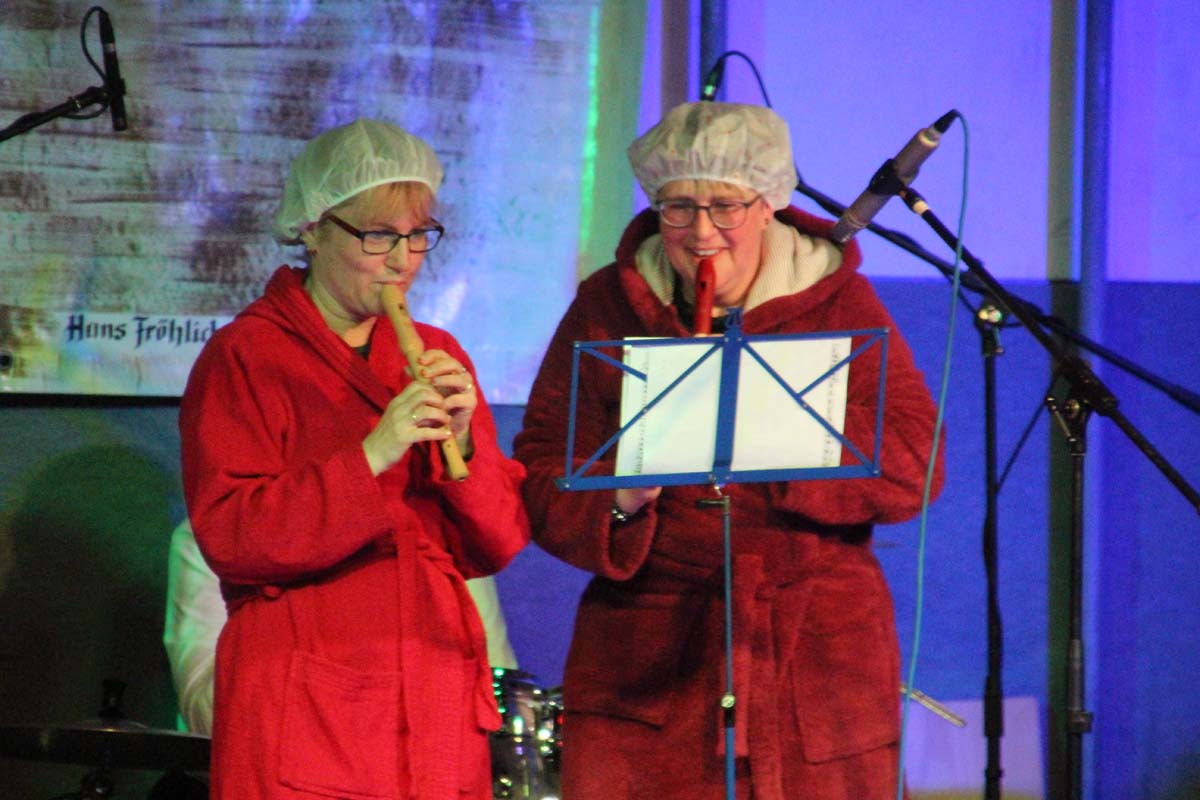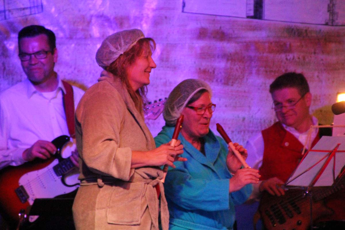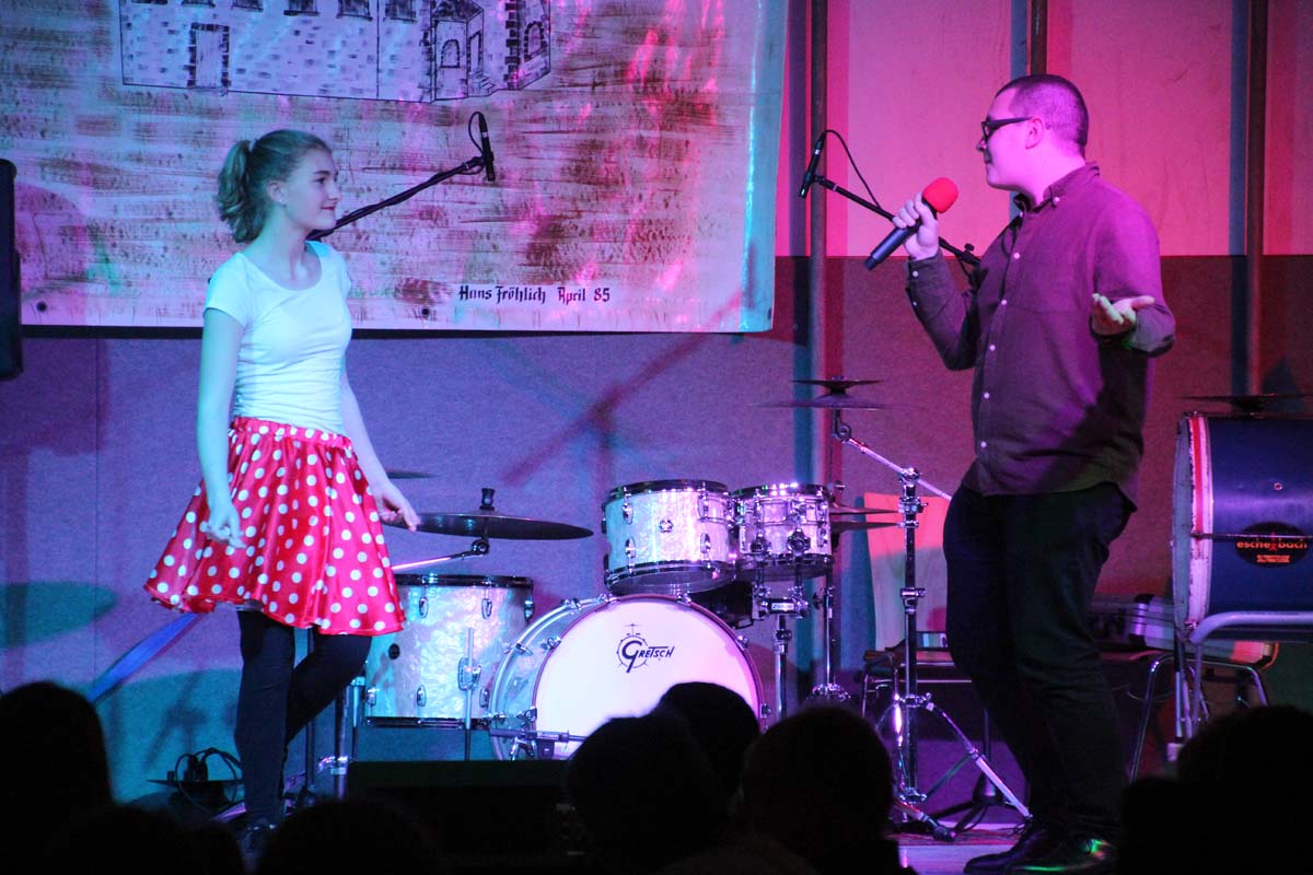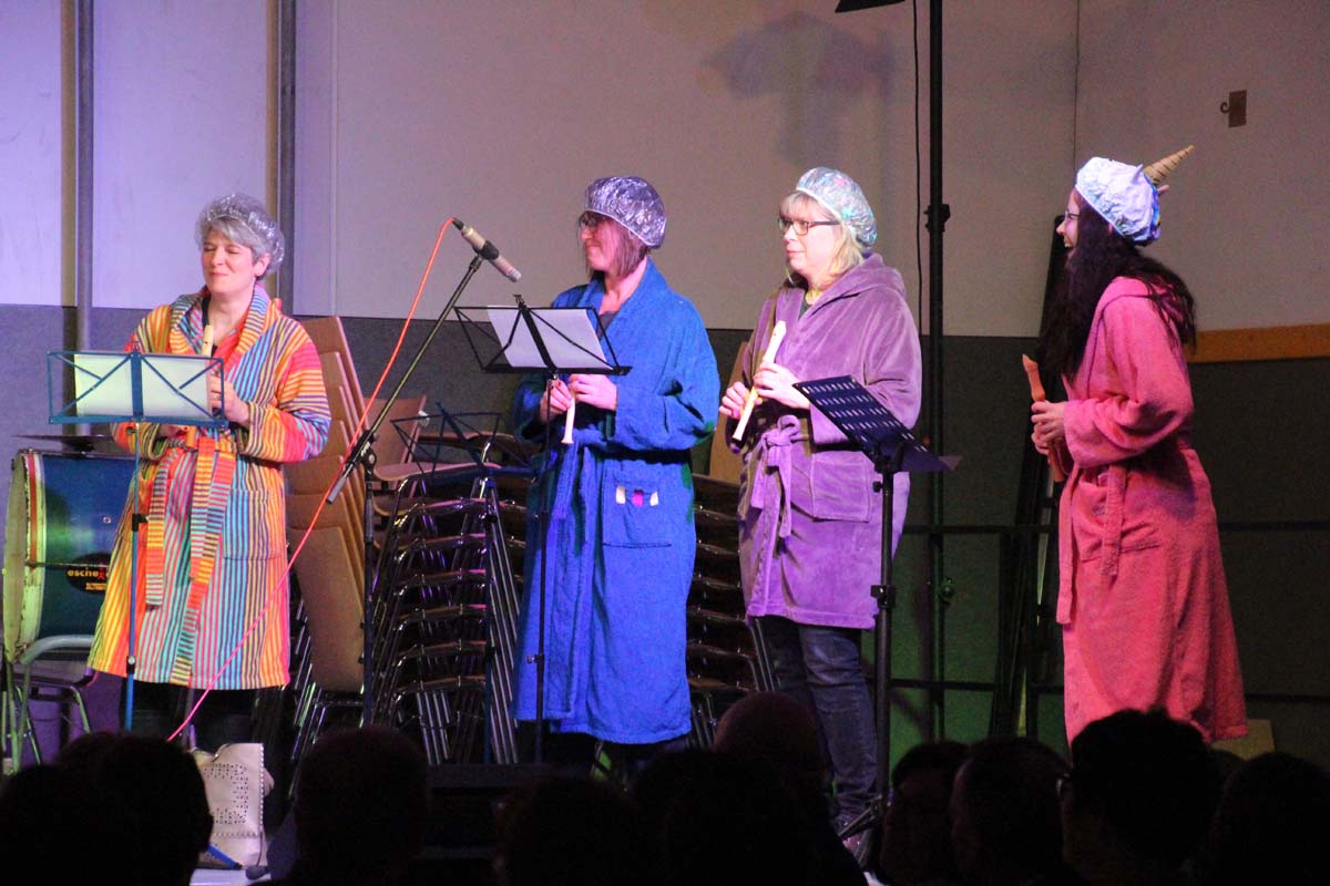 Das erste Highlight folgte mit der Eschelbacher Tagesschau, lokale Nachrichten des vergangenen Jahres gespickt mit witzigen Bildern und Kommentaren. Nach einer kurzen Pause folgte die wohl aussergewöhnlichste Hitparade. Hier hatte sich der Musikverein wirklich richtig was einfallen lassen. Hier musste sich am Ende das fantastische Männerballett den Blockflötenfrauen mit ihrem Heissluftgebläse geschlagen geben. Denn ihre AC/DC Einlage war einfach unschlagbar. Aber auch alle anderen Teilnehmer der Hitparade lieferten eine grossartige Show. Unter allen Teilnehmern zur Abstimmung des Hitparadenergebnis wurden neun tolle Preise ausgelost.