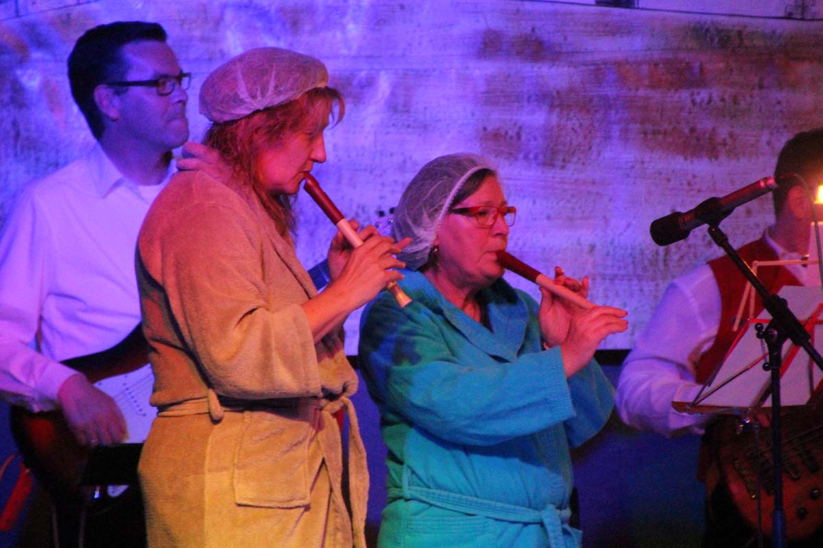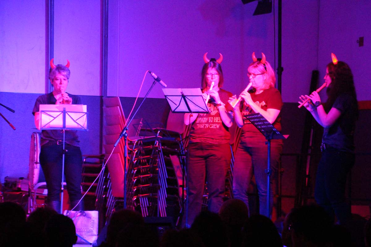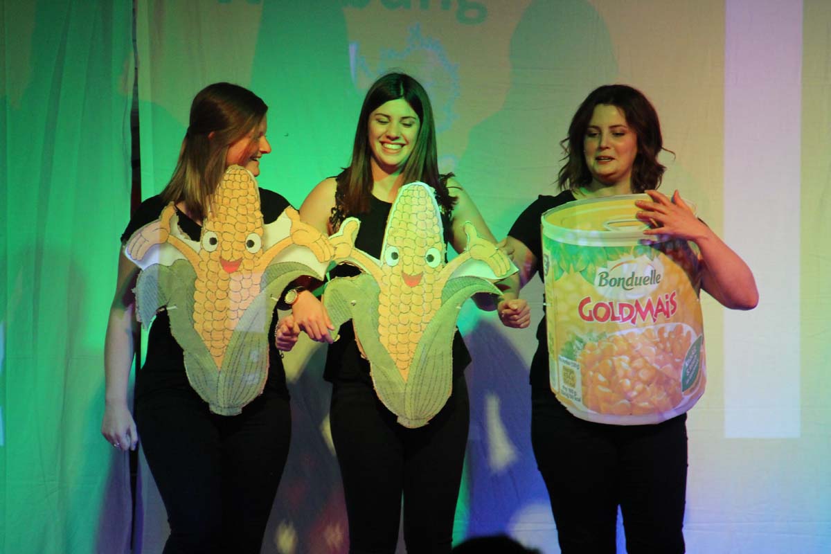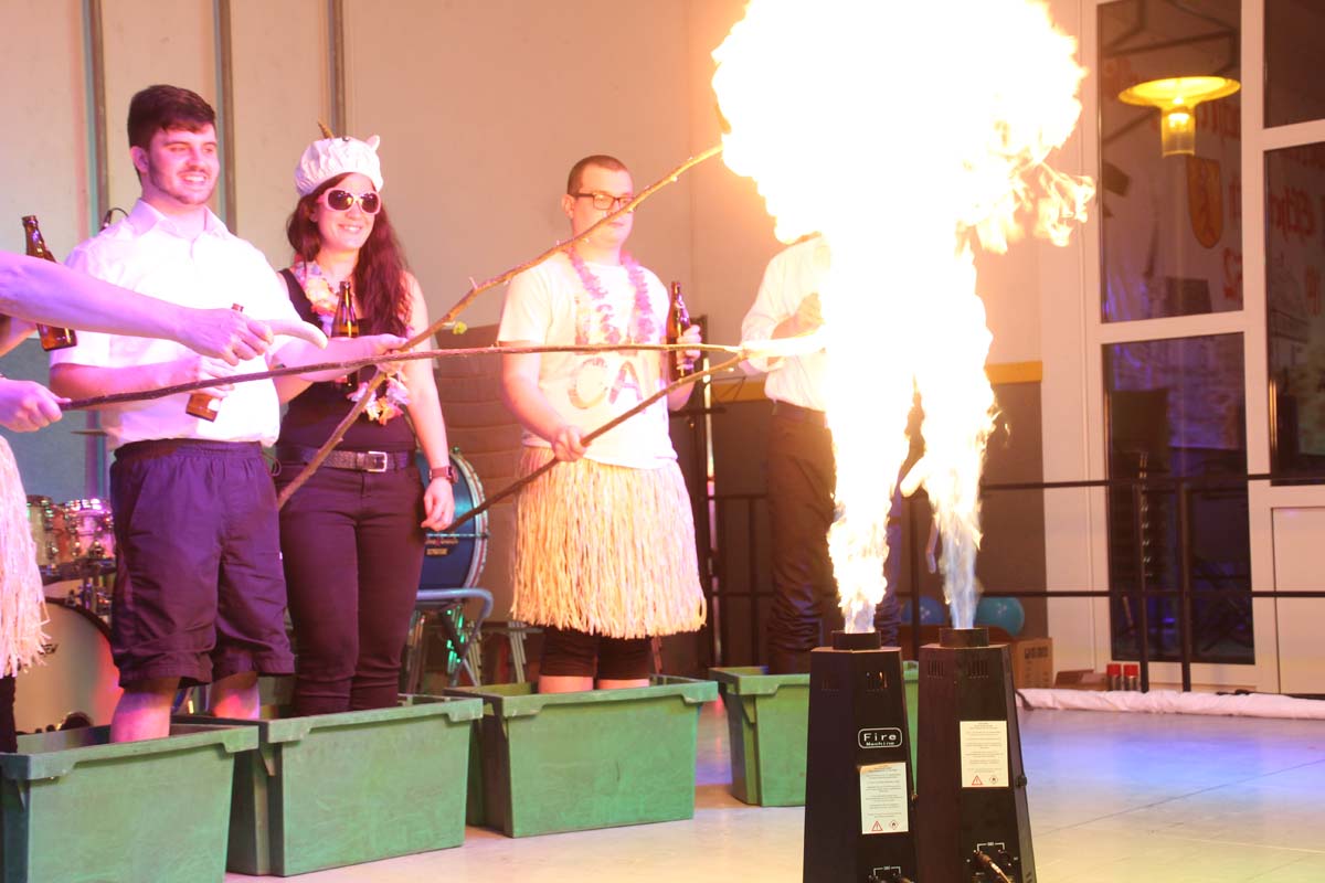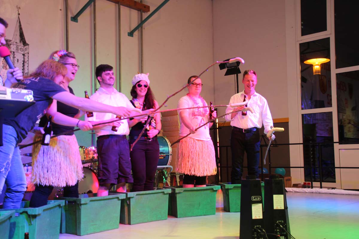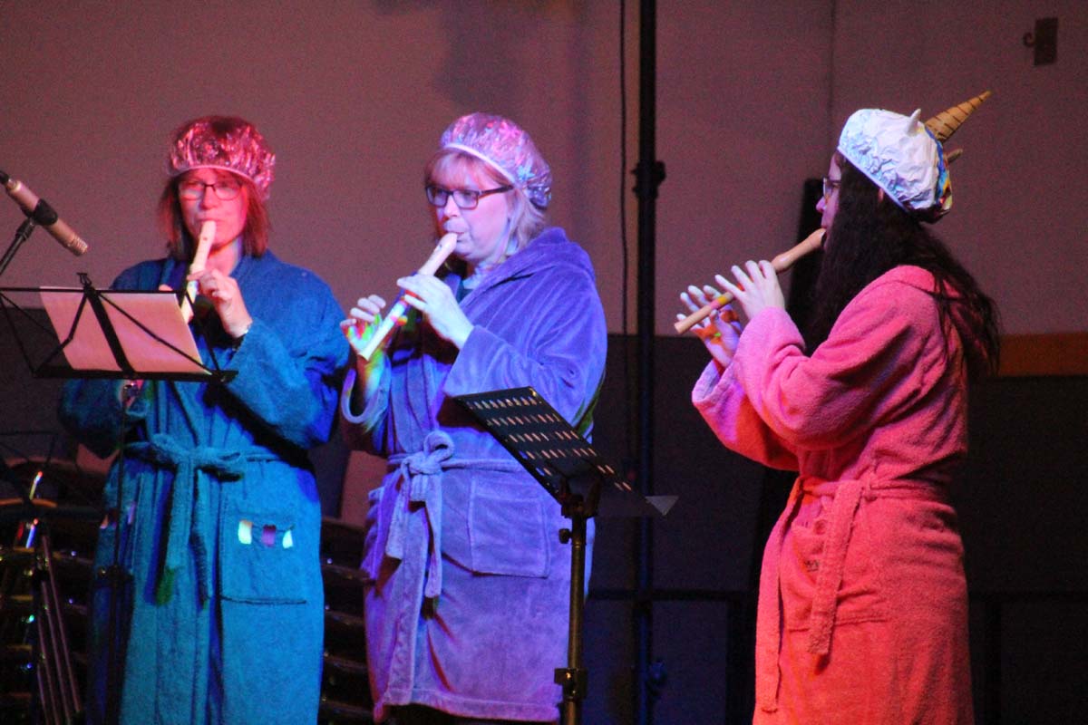 Das erste Highlight folgte mit der Eschelbacher Tagesschau, lokale Nachrichten des vergangenen Jahres gespickt mit witzigen Bildern und Kommentaren. Nach einer kurzen Pause folgte die wohl aussergewöhnlichste Hitparade. Hier hatte sich der Musikverein wirklich richtig was einfallen lassen. Hier musste sich am Ende das fantastische Männerballett den Blockflötenfrauen mit ihrem Heissluftgebläse geschlagen geben. Denn ihre AC/DC Einlage war einfach unschlagbar. Aber auch alle anderen Teilnehmer der Hitparade lieferten eine grossartige Show. Unter allen Teilnehmern zur Abstimmung des Hitparadenergebnis wurden neun tolle Preise ausgelost.