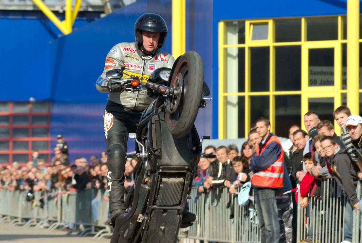 spektakuläre Shows mit Harley Stuntfahrer Rainer Schwarz um 11.30 Uhr und 14.30 Uhr, sowie Minimotorräder zum Selbstfahren für Kinder ab 7 Jahren sind nur einige von vielen Programmpunkten die mit Unterstützung der Harley-Davidson Niederlassung Rhein-Neckar Ludwigshafen die Bikerfans erfreuen.