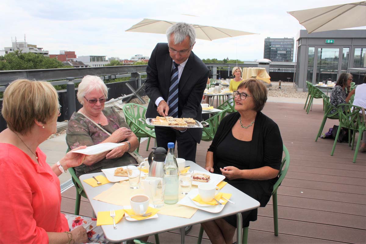(zg) 82 „Grüne Damen“ und ein „Grüner Herr“ engagieren sich ehrenamtlich in den vier Kliniken der GRN Gesundheitszentren Rhein-Neckar gGmbH (GRN) in Eberbach, Schwetzingen, Sinsheim und Weinheim. 32 von ihnen waren einer Einladung in das Landratsamt in Heidelberg gefolgt, wo sie von Landrat Stefan Dallinger am Montagnachmittag (18. Juni 2018) mit Kaffee und Kuchen sowie dem einen oder anderen Cocktail bewirtet wurden. Der Anlass: „Einfach mal Danke sagen“, so der Landrat in seiner kurzen Ansprache an seine Gäste.