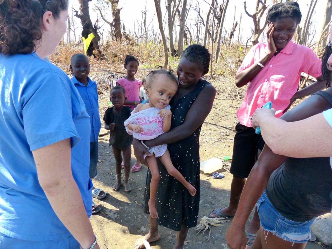 dsc09172Mit zwei Ärztinnen aus den USA fuhr ich zweieinhalb Stunden an der Südwestküste entlang, bis nach Tibouron, um Kinder aus unserem Unterernährtenprogramm zu besuchen und das Ausmaß der Zerstörung zu evaluieren. Wir waren geschockt von der massiven Verwüstung – viele Straßen sind durch Erdrutsche noch immer kaum passierbar. Auf den Märkten am Straßenrand gab es kaum noch Essbares, Menschen hungern. Mit dem Militär brachten wir Lebensmittel, Abdeckplanen und Medikamente in diese Gegend.
