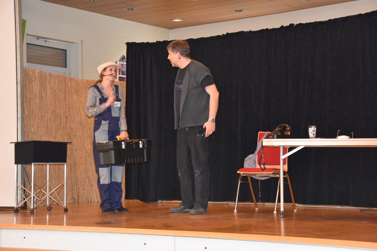 Vor vollem Haus mit mehr als 90 Zuschauern zeigten die Schauspieler unterhaltsam verschiedene Methoden, die Trickbetrüger anwenden und wie man sich am besten davor schützt. Das Publikum, das vom Helferteam der Seniorengemeinschaft mit Kaffee und Kuchen verwöhnt wurde, konnte aktiv mitmachen und unmittelbar in die Szenen eingreifen, um Tipps zu geben und Lösungen vorzuschlagen. Bei anderen Fallbeispielen, wie einem angeblichen Handwerker oder einem falschen Schlüsseldienst wurden Gäste zu Laienschauspielern, die das richtige Verhalten in einer Betrugssituation vorführten.