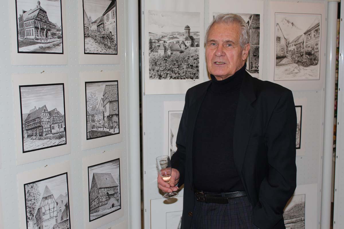 (cr) Nehmen sie sich mal ein Viertelstündchen Zeit oder vielleicht auch etwas mehr und besuchen sie die die Kunstausstellung von Heinz Hampicke im Rathaus „Schwarz auf Weiss“. Ich glaube ihnen nicht zu viel zu versprechen, aber diese Ausstellung ist sehenswert. Der seit 1967 in Sinsheim lebende Künstler Heinz Hampicke zeigt hier hauptsächlich seine Bleistift-Federzeichnungen und Lavierungen mit Motiven aus Sinsheim in den 50er Jahren. Diese detailverliebten Zeichnungen zeigen Sinsheim in einer wahren Schönheit und im Glanze der damaligen Zeit.