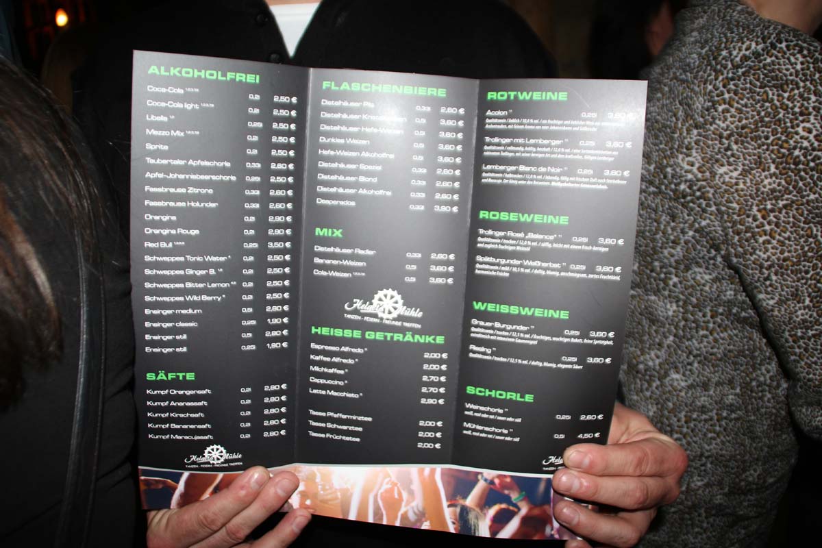 Und schon zur Eröffnung war kaum noch ein Fleckchen Platz rund um das Mühlrad. Einen solchen Eröffnungserfolg hatte Helget nicht erwartet und so mussten für das Wochenende auch gleich weitere Getränke nachgeordert werden, denn die Gäste hatten am Eröffnungsabend die Bar fast trocken gelegt. Von Donnerstag bis Samstag wird hier in Zukunft wieder rund um die Mühle gefeiert und getanzt. Von 21.00 Uhr bis morgens um 3.00 Uhr kann hier gemütlich gefeiert und abgetanzt werden und wenn die Stimmung am Kochen ist wird einfach bis 05.00 Uhr verlängert. Live Musik wird es auch wieder an besonderen Abenden geben, wie zum Beispiel bei Rock in den Mai mit „All In“. An warmen Abenden steht der Aussenbereich mit zur Verfügung und auch die Raucher müssen nicht frieren, denn diese dürfen wie bisher in aller Gemütlichkeit im ersten Stock mit einer eigenen Bar ihrer Sucht fröhnen. Für den kleinen Hunger zwischendurch wird es Zukunft Pizza geben.