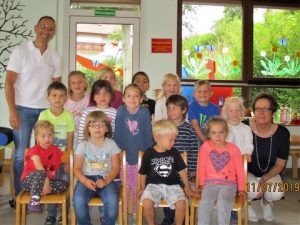(zg) Statt früh am Morgen, wie in den vergangenen Jahren, kamen am vergangenen Freitagabend unsere Schulanfänger nochmal in den Kindergarten. Schwer bepackt mit Luftmatratze, Schlafsachen, Kuscheltieren uns Zahnbürsten kamen alle sehr gespannt zur Schulanfängerübernachtung.