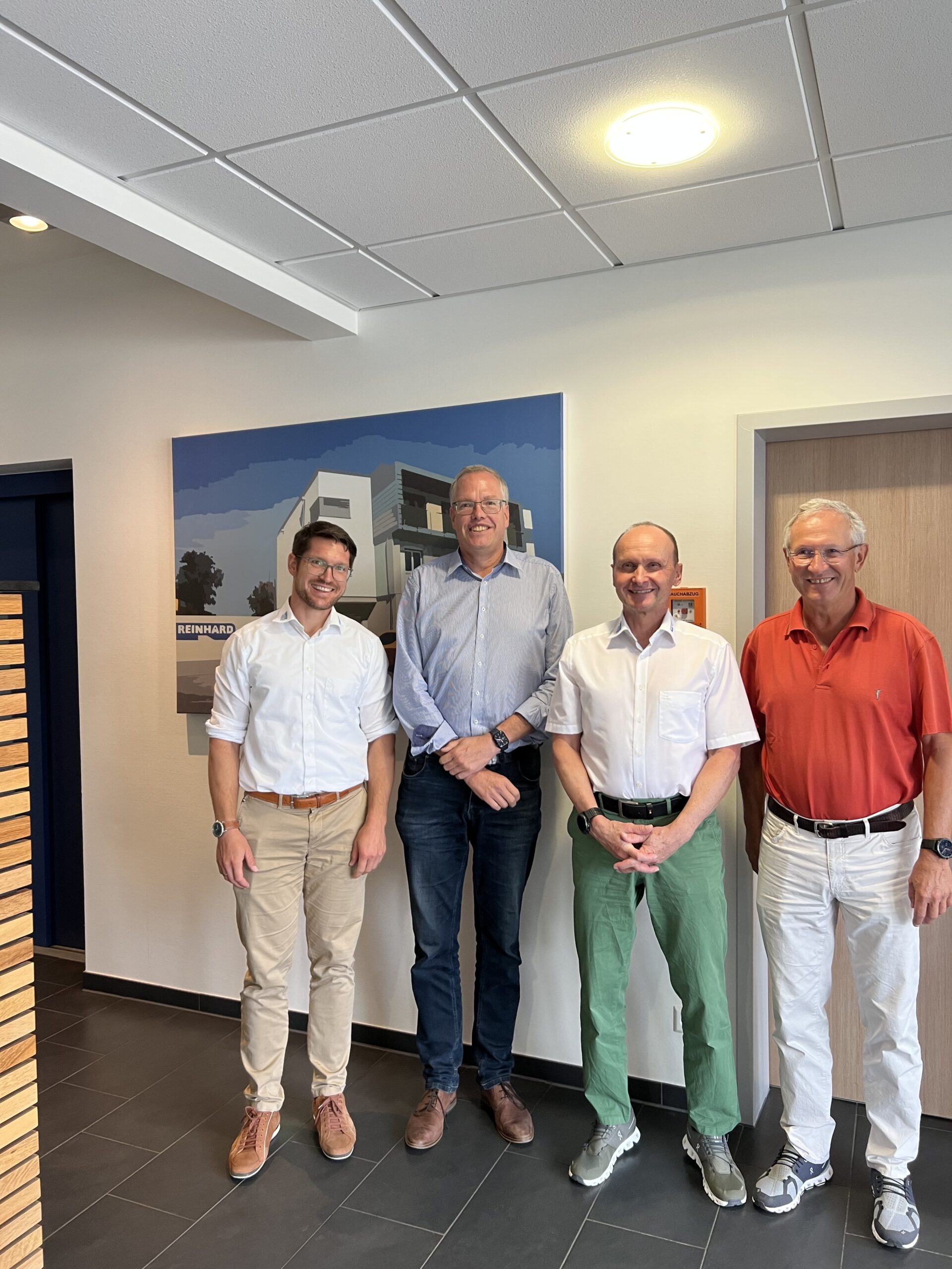 Die Bauwirtschaft arbeitet aktuell unter erschwerten Bedingungen: steigende Rohstoffkosten und Bauzinsen, Liefer- und Materialengpässe sowie fehlende Fachkräfte sind nur einige der Herausforderungen, die die Branche derzeit zu bewältigen hat. Vor allem die stark schwankenden Rohstoffpreise für Baumaterial setzen den Unternehmen der Branche stark zu. Davon konnte sich auch der Landtagsabgeordnete Dr. Albrecht Schütte im Rahmen seiner diesjährigen Sommertour durch den Wahlkreis bei der Firma Reinhard in Zuzenhausen ein Bild machen. Zwar hat die Bauunternehmung Reinhard in ihrer über 120-jährigen Firmentradition schon einige Wirtschaftskrisen erlebt, die derzeitige Situation sei aber in besonderer Weise herausfordernd, so Hans-Joachim Reinhard, der das Unternehmen mit seinem Bruder Georg Reinhard in vierter Generation führte und nun an Geschäftsführer Bastian Reinhard in fünfter Generation übergeben hat. Angesichts der deutlichen Preissteigerungen seien Preisbindungen für Angebote oftmals nur noch für kurze Zeit möglich, um auf die aktuelle Marktsituation entsprechend reagieren zu können. Die derzeitige Situation mache ein Umdenken erforderlich – Ausschreibungen müssten vorgezogen werden, damit das Material rechtzeitig für die entsprechenden Bauphasen vorliege, so Reinhard. Die ganze Baulogistik sei durch die längere Planung jetzt mehr gefordert als noch vor einigen Jahren.