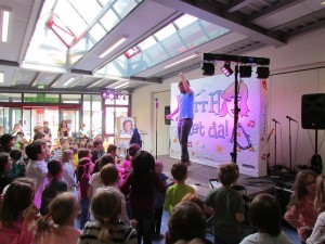 herrH’s sympathische Art kam bei den Kindern gut an: Mit Hits wie “Ich bin ein Pinguin” oder “Emma, die Ente, die ewig verpennte” brachte er die Aula zum Beben und jeden Anwesenden zum Mitsingen und Mittanzen, so dass die Kinder begeistert eine Zugabe forderten bevor herrH die Bühne verlassen durfte um den vielen kleinen Fans Autogramme zu verteilen.t