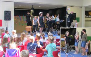 Konrektor Schell nutzte die Gelegenheit sich in seinem aber auch im Namen des gesamten Kollegiums für die gemeinsame Zeit und das stets offene Ohr der Vorgesetzten und Kollegin zu bedanken. Natürlich darf an einer Schule, die weit über die Grenzen Sinsheims hinaus für ihre Grundschulrockband bekannt ist, bei einem solchen Anlass auch die Musik nicht fehlen. Deshalb rockten nicht nur die Kinder der Band „Rock ‘n‘ School“ extra für Frau Fischer die Aula, sondern auch das Lehrerkollegium brachte mit einer ganz eigenen Version von „Gimme some lovin‘“ der Spencer Davis Group den Saal zum Beben. Beim Refrain „Alles, alles Gute …“ sangen alle lautstark mit. Schließlich ergriff Rektorin Fischer, die nach eigenem Bekunden schon als kleines Kind Lehrerin werden wollte, selbst das Wort und bedankte sich sichtlich gerührt bei allen für die vielen Lobes- und Dankesworte, Geschenke und die tollen Beiträge. Dabei ließ sie es sich nicht nehmen, ihren Schülerinnen und Schülern den Beginn der Sommerferien mit einem spendierten Eis zu versüßen.