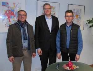 (zg) Gemeinsam mit Gemeinderat Ernst Rimmler besuchte Dr. Albrecht Schütte MdL (CDU) den neuen Bürgermeister auf dem Reichartshausener Rathaus. Schon der Weg ins Rathaus durch das KOMM-IN mit diversen Geschäften zeigt, wie Reichartshausen in Sachen Zukunft Maßstäbe setzt. Schütte gratulierte Jungmann zu seinem hervorragenden Wahlergebnis und fragte nach den Anliegen der Gemeinde.