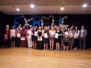 Mit den Herausforderungen des Altenpflegeberufes und der zurückliegenden Ausbildung beschäftigten sich auch die abwechslungsreichen Programmbeiträge der verschiedenen Klassen. So präsentierte die Examensklasse 3BFA3 mit dem heiter-pointierten Gedicht „Ich habe leider keine Zeit – wir sind heute nur zu zweit“ den Tagesablauf einer pflegebedürftigen Person. Mit den Sparmaßnahmen in der Altenpflege beschäftigte sich auch der Sketch der Klasse 3BFA1. Die 3BFA2 unterhielt das Publikum mit der Darstellung einer Prüfungssituation im Bereich Aktivierung, die Absolventinnen und Absolventen der Berufsfachschule für Altenpflegehilfe erinnerten mit einem stimmungsvollen Liedbeitrag an das zurückliegende Ausbildungsjahr. Schließlich wurden die Absolventinnen und Absolventen mit einem einfühlsamen Gedicht von Tina Willms und vielen Herzenswünschen für ihren weiteren Lebensweg verabschiedet.