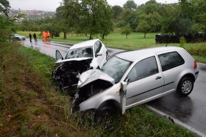 Ersten Ermittlungen zu Folge stießen zwei VW, Golf im Begegnungsverkehr frontal zusammen.