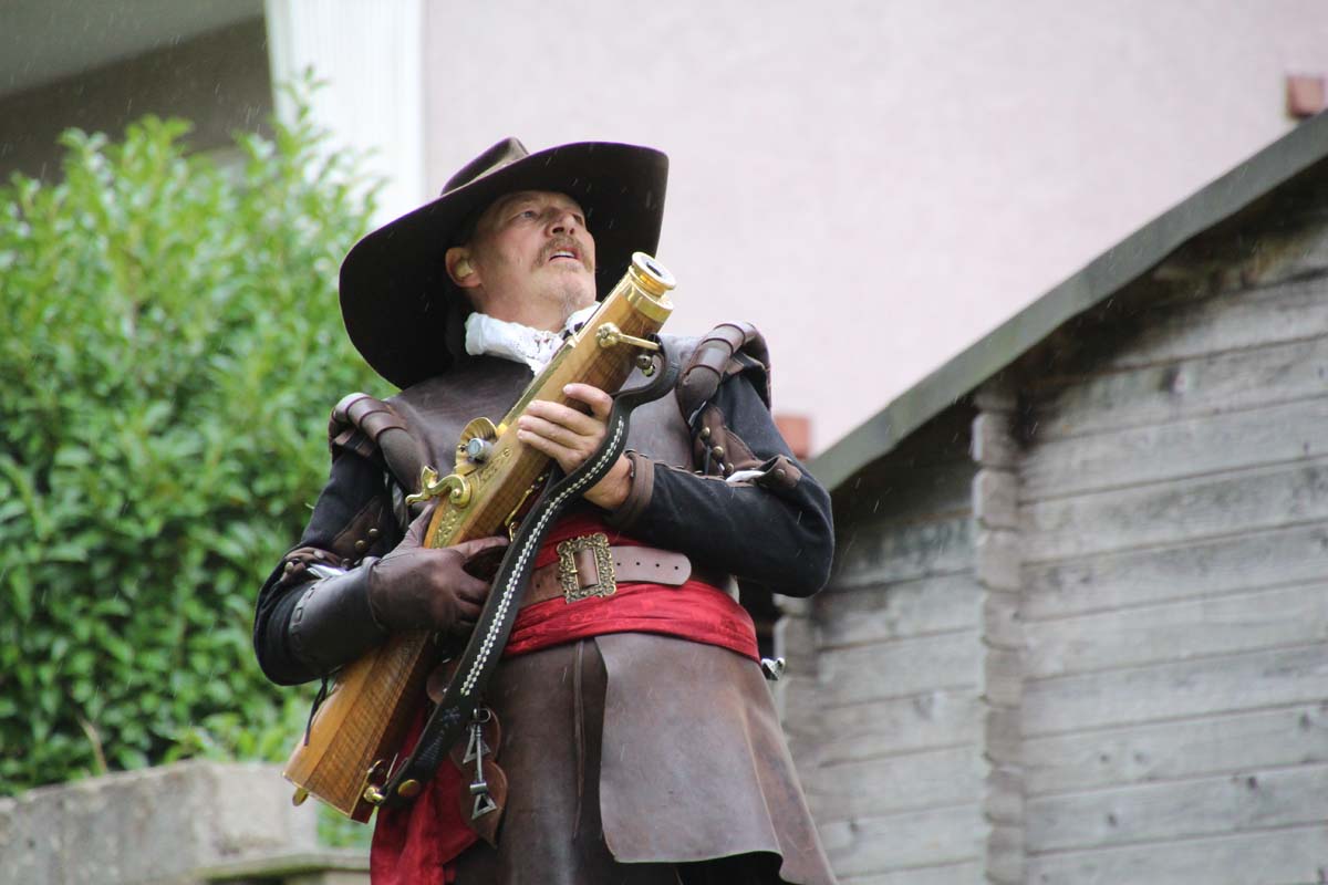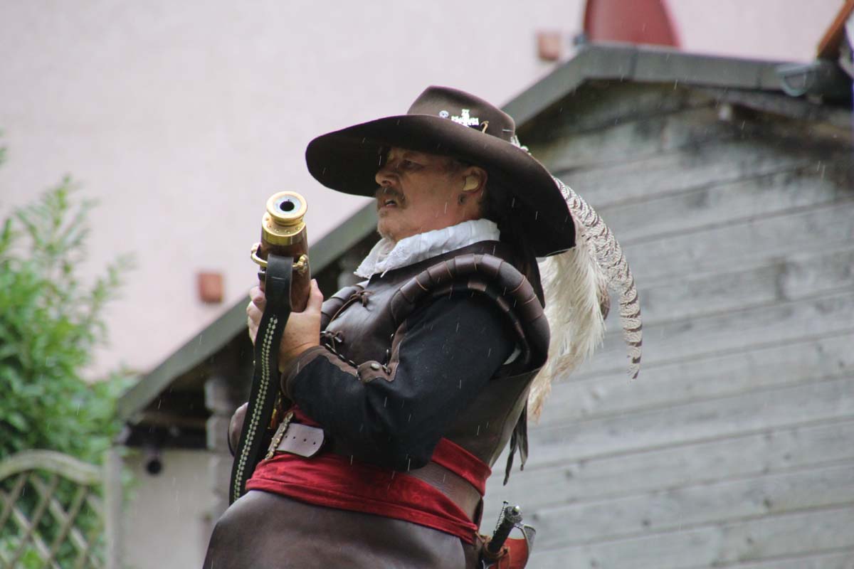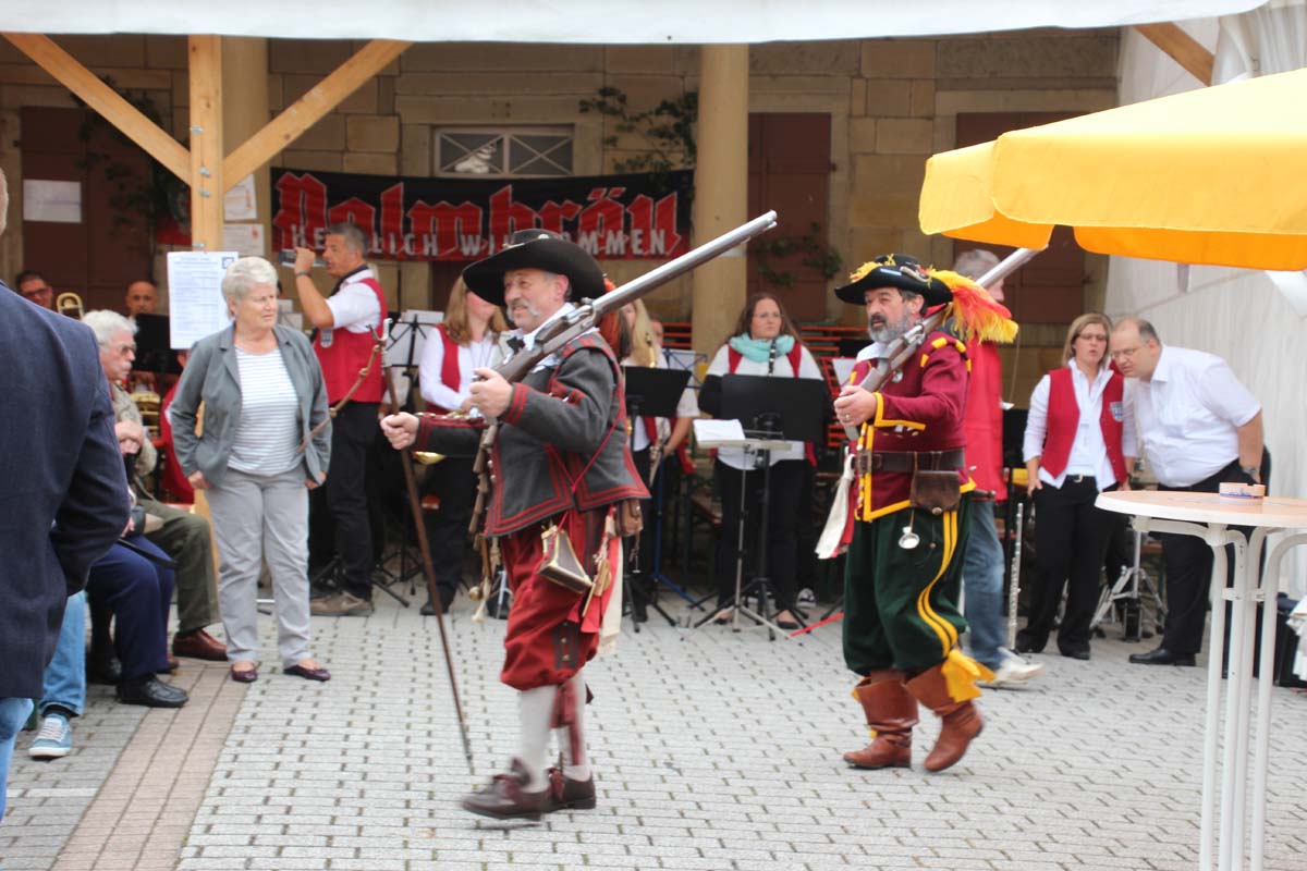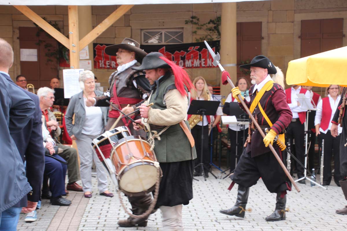 (cr) Weit zu hören war die Hilsbacher Kerwe 17 zur Eröffnung auch in diesem Jahr. Pünktlich um 17.00 Uhr marschierte in diesem Jahr wieder Tillys Wilder Haufen in ihren original Kostumen aus dem 30 jährigen Krieg ein. Dies ist immer etwas besonderes fürs Auge. Ortsvorsteher Martin Gund liess sich auch durch das fortwehen seiner Rede nicht aus dem Konzept bringen. Traditionell untermalte der Musikverein Hilsbach 1952 e.V. die Eröffnung und auch das Badener Lied erschallte lautstark unter Mitwirkung aller anwesenden Gäste.