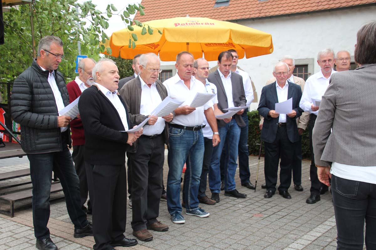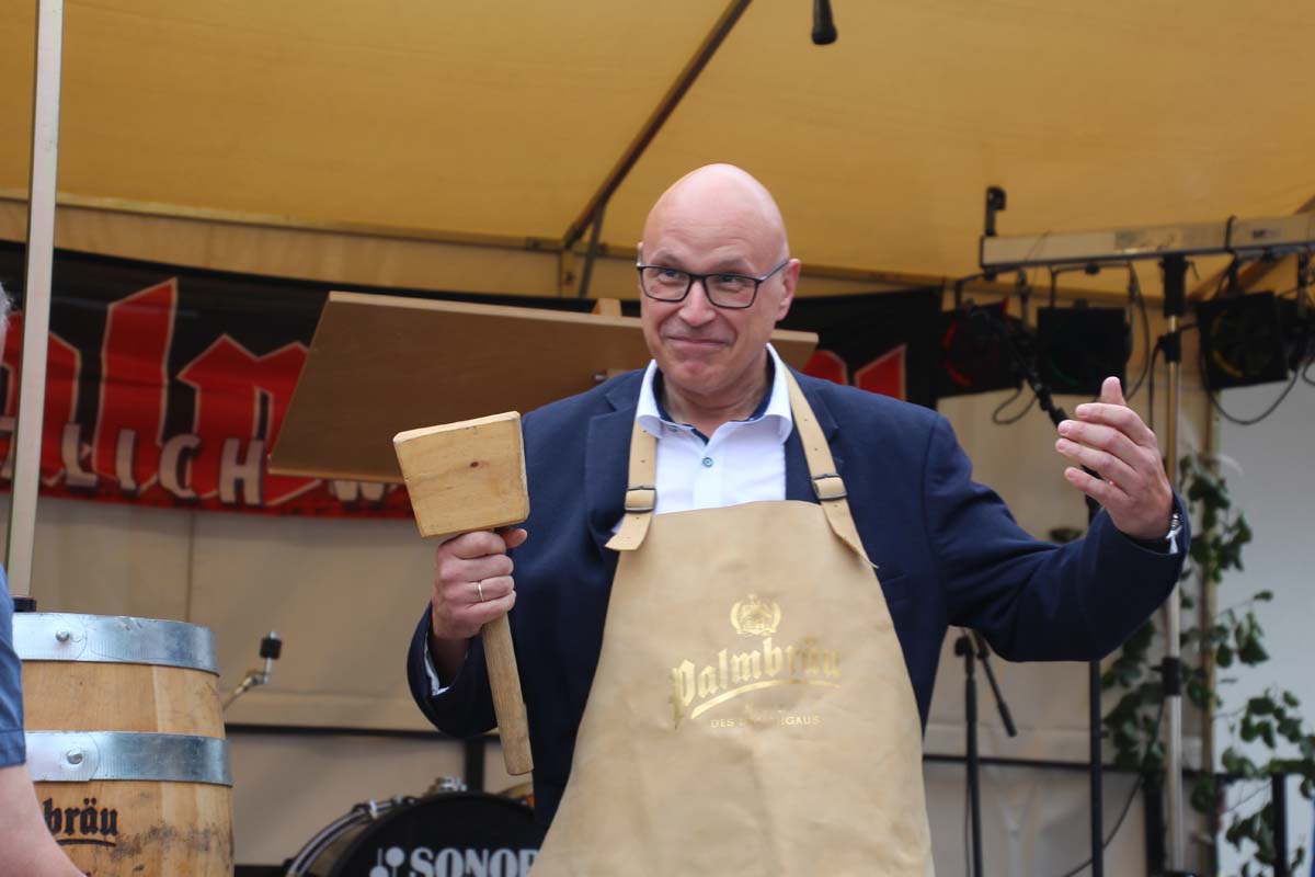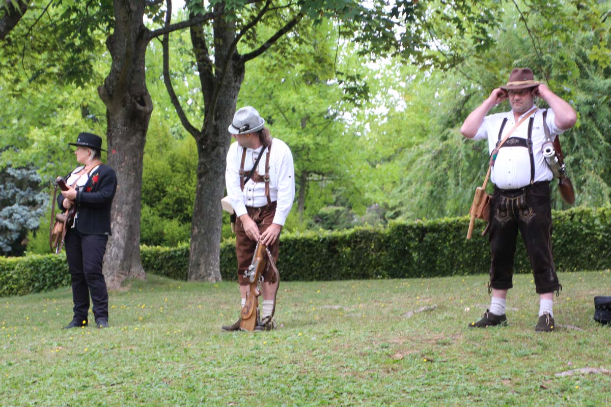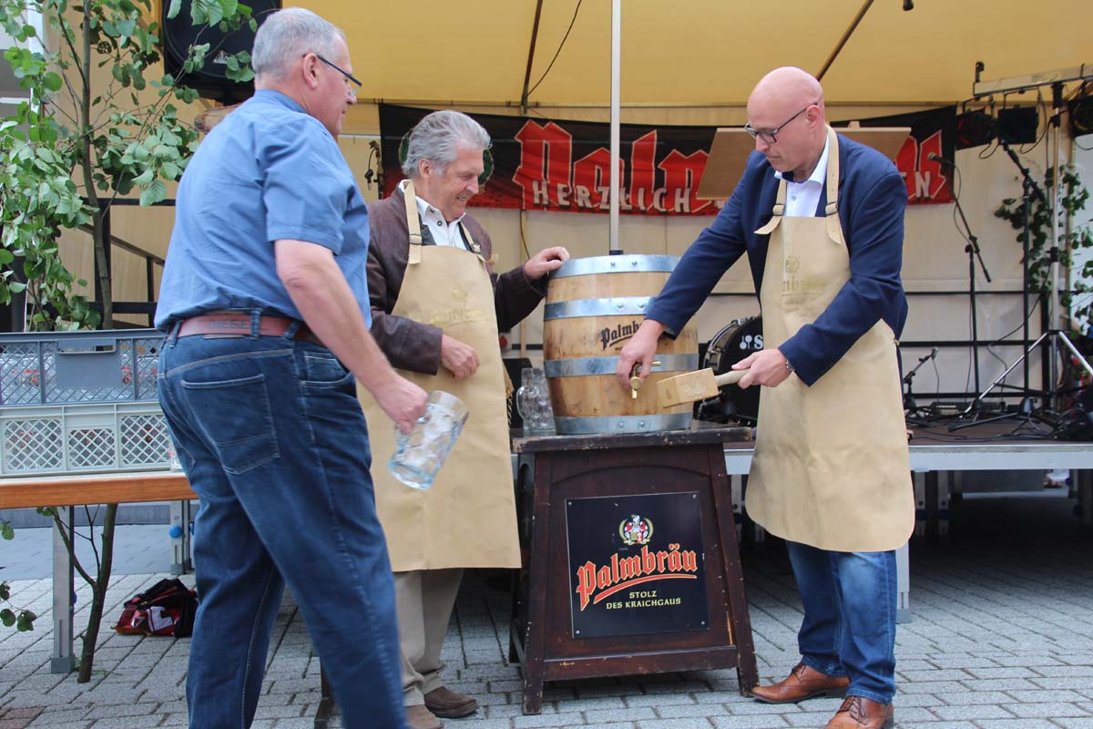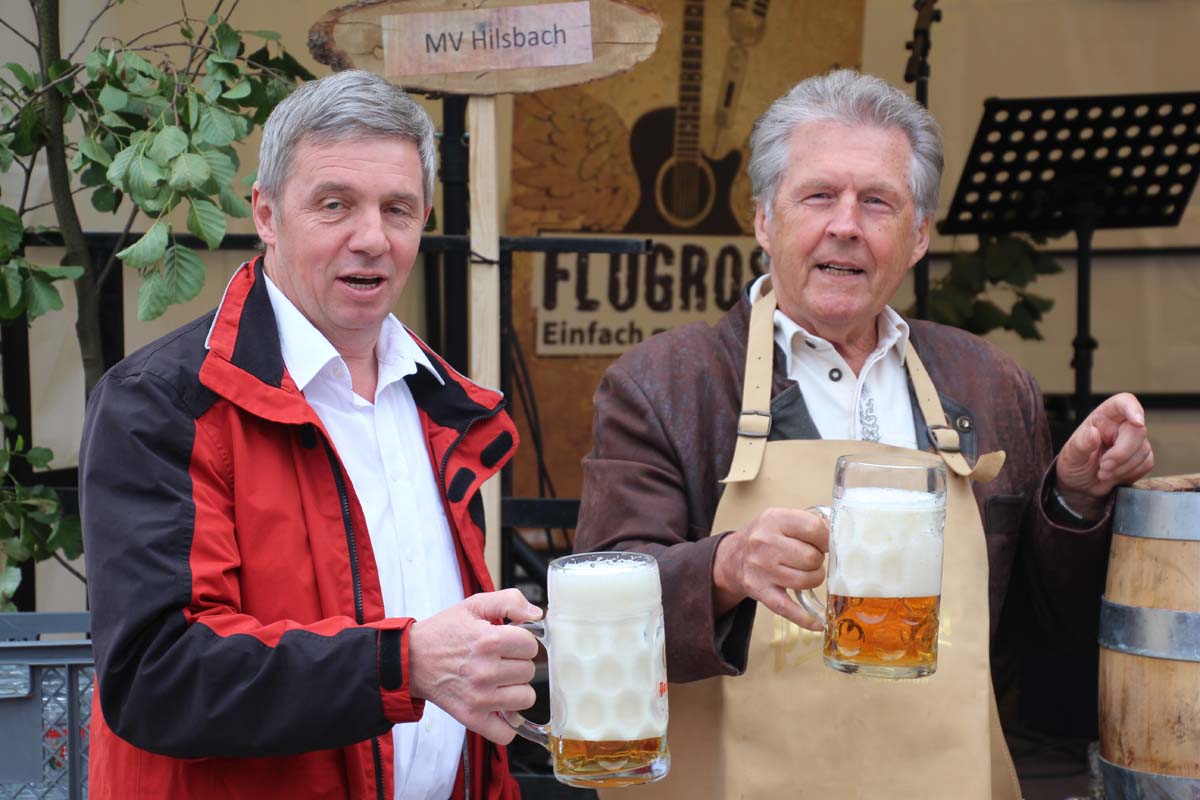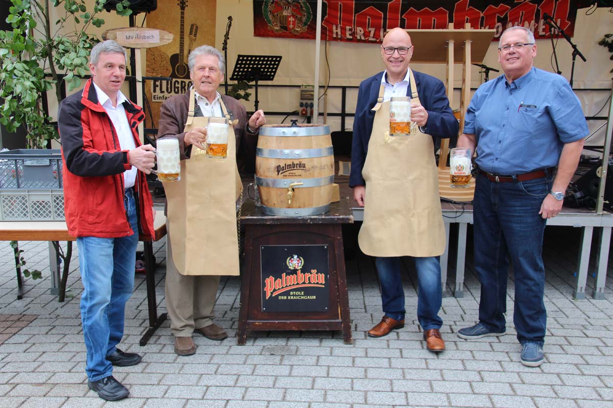 Auch der Männergesangsverein Hilsbach unter Leitung von Simone geiger Gund erfreute das Publikum mit fröhlichen Liedern. Der Fassanstich des gestifteten Palmbräu Fasses gelang Martin Gund auf den ersten Schlag und reichte um die durstigen Kehlen fürs Erste zu stillen zu Tillys wildem Haufen und drei Salven von Böllerschüssen. Für die Kinder und Jugendlichen gab es leckere Säfte.