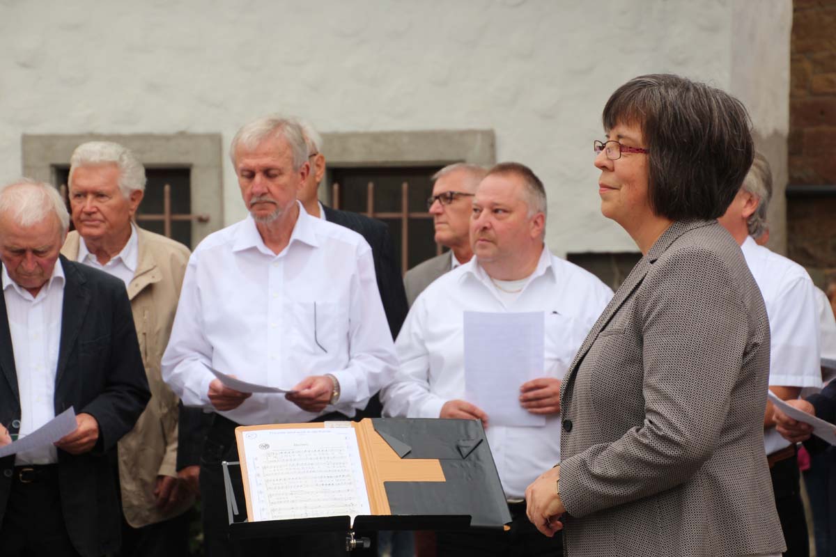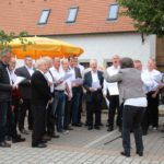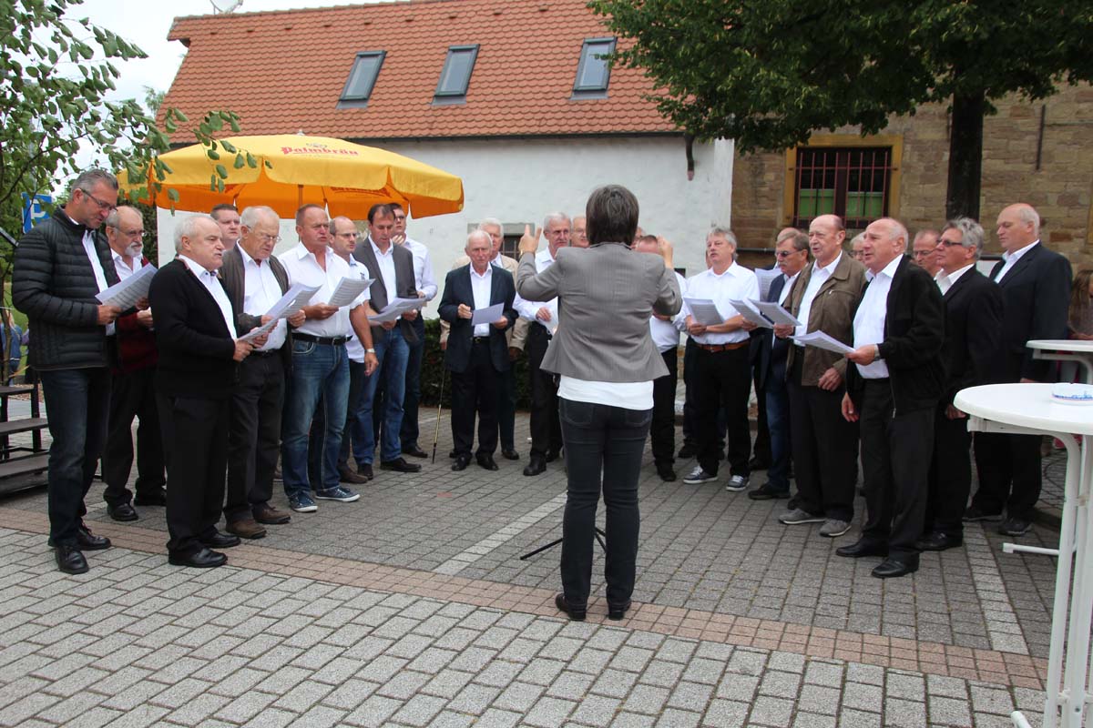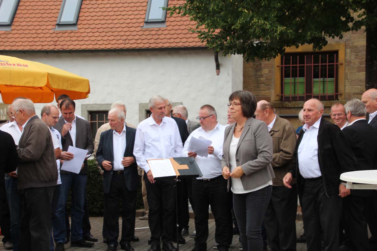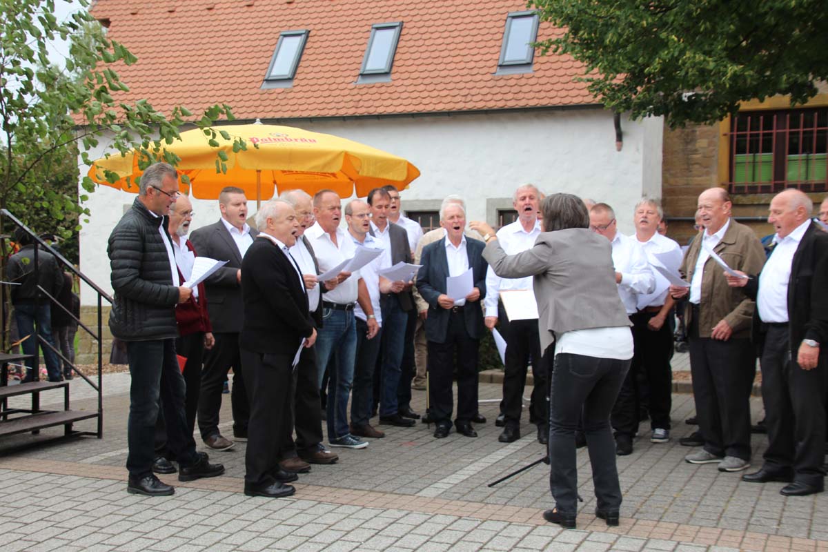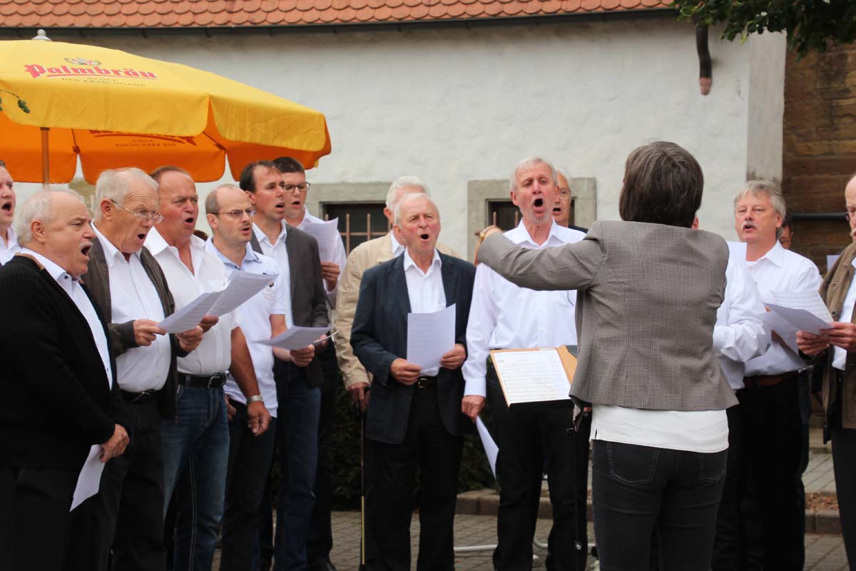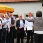 Auch der Männergesangsverein Hilsbach unter Leitung von Simone geiger Gund erfreute das Publikum mit fröhlichen Liedern. Der Fassanstich des gestifteten Palmbräu Fasses gelang Martin Gund auf den ersten Schlag und reichte um die durstigen Kehlen fürs Erste zu stillen zu Tillys wildem Haufen und drei Salven von Böllerschüssen. Für die Kinder und Jugendlichen gab es leckere Säfte.