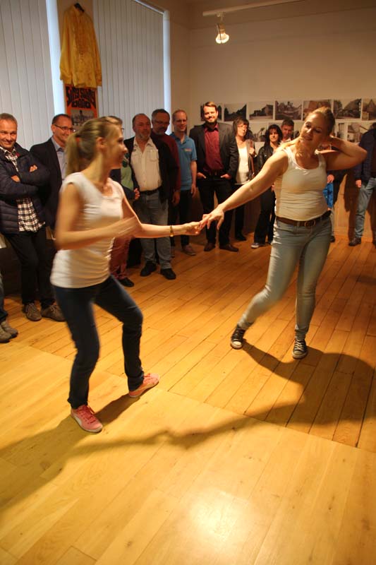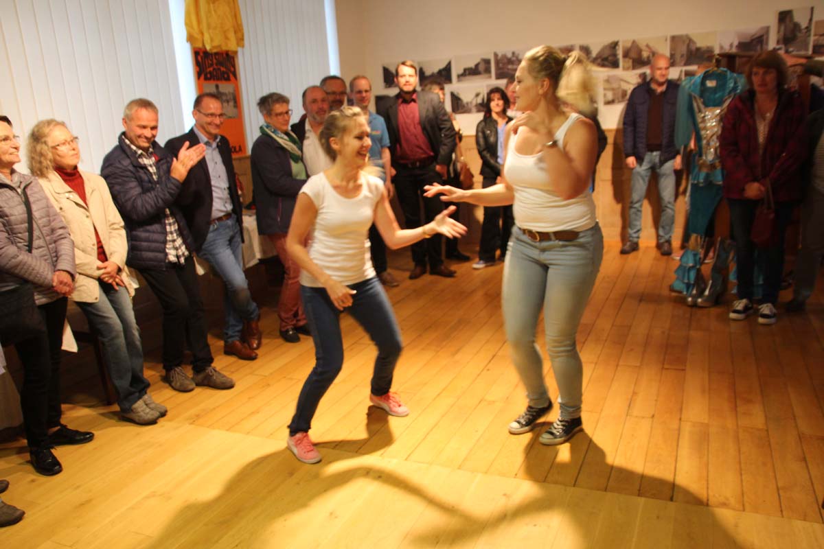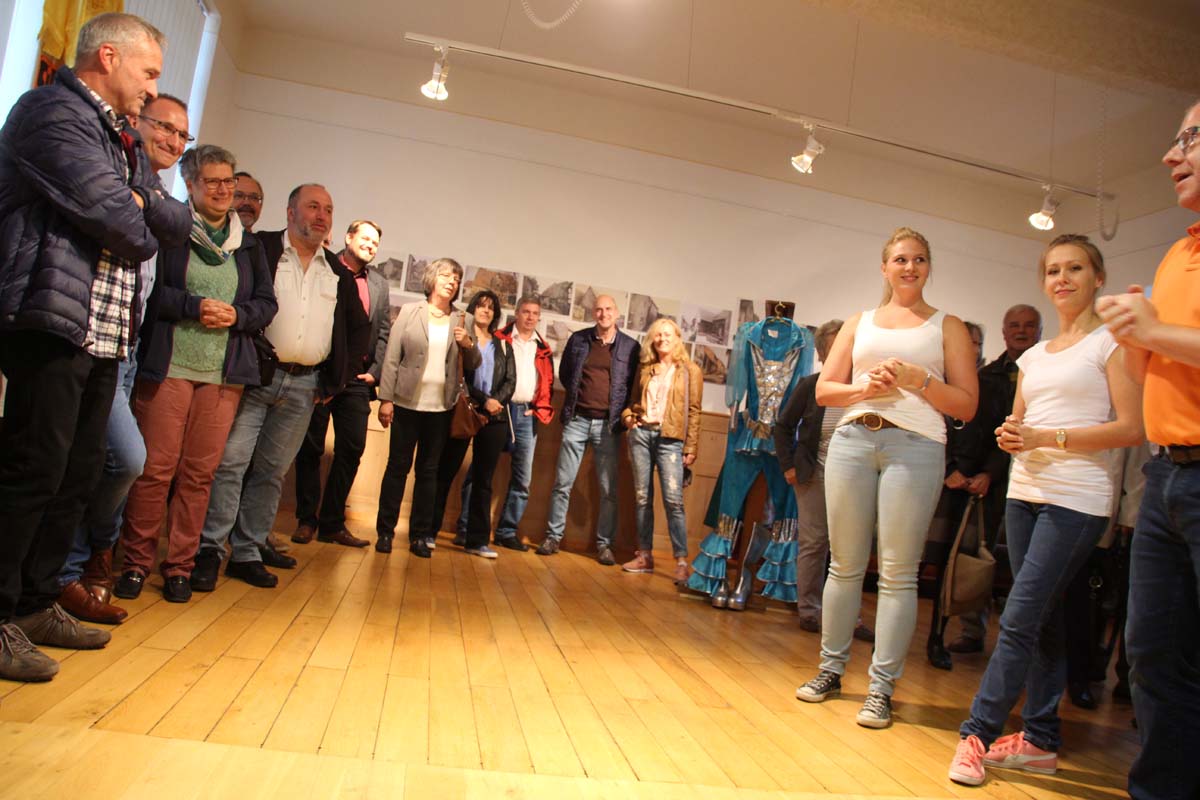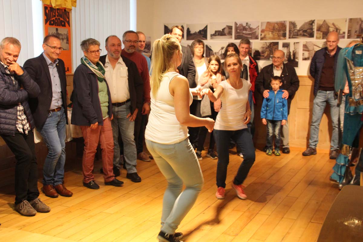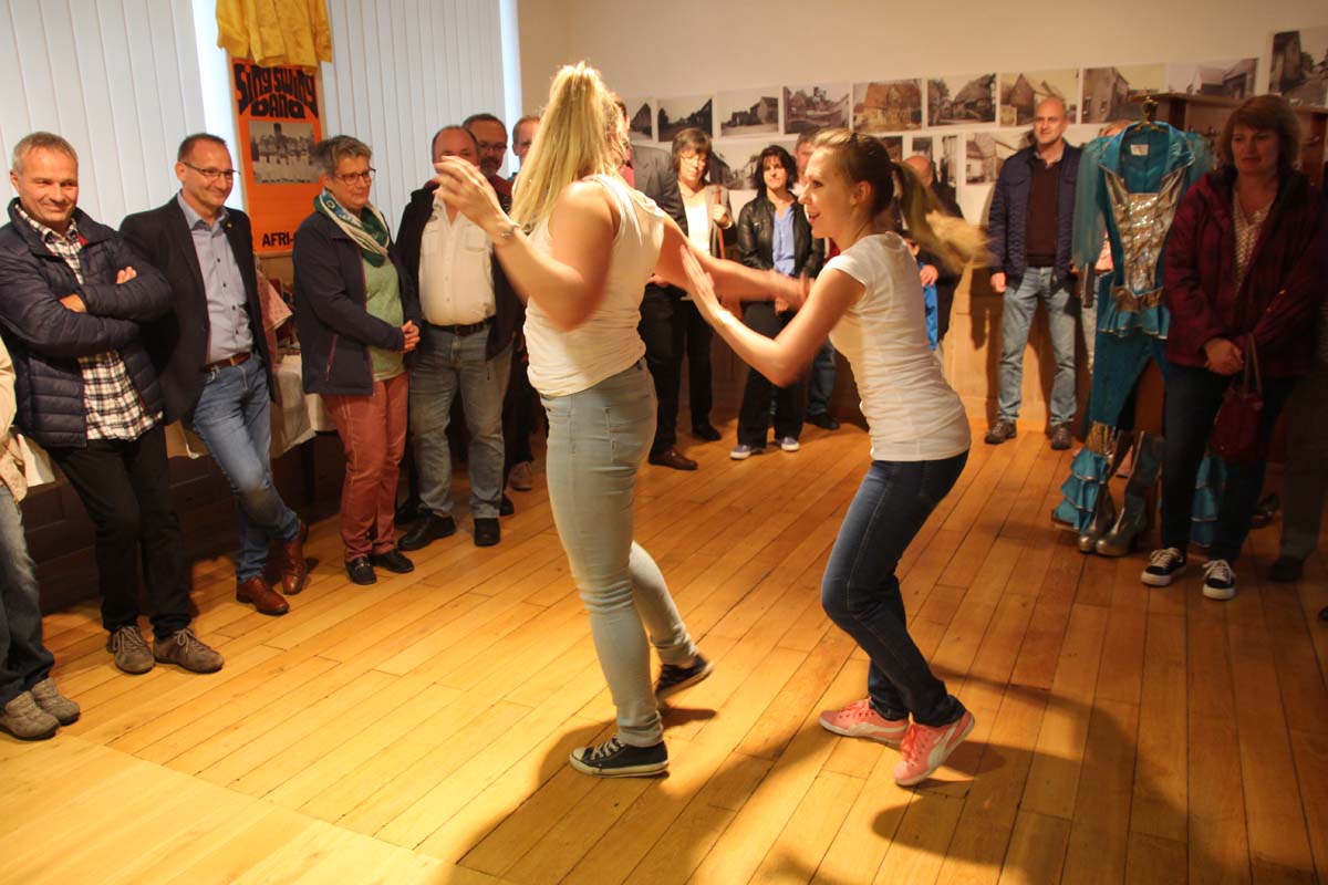 Danach ging es auf den Rundgang durch die Hilsbacher Kerwe. Hier wartete bereits der Hilsbacher Heimatverein mit ihrer Ausstellung „Rock`n Roll der 60er und 70er Jahre“. Zur Eröffnung gab es zur Einstimmung eine Showeinlage des Tanzcentrum Sinsheim mit Anna Stegmaier und Jana Kaltenbach.