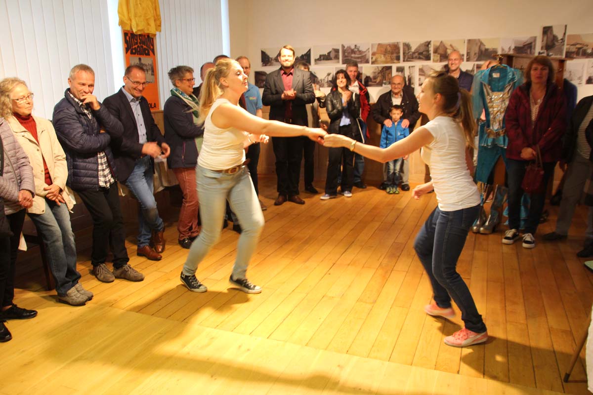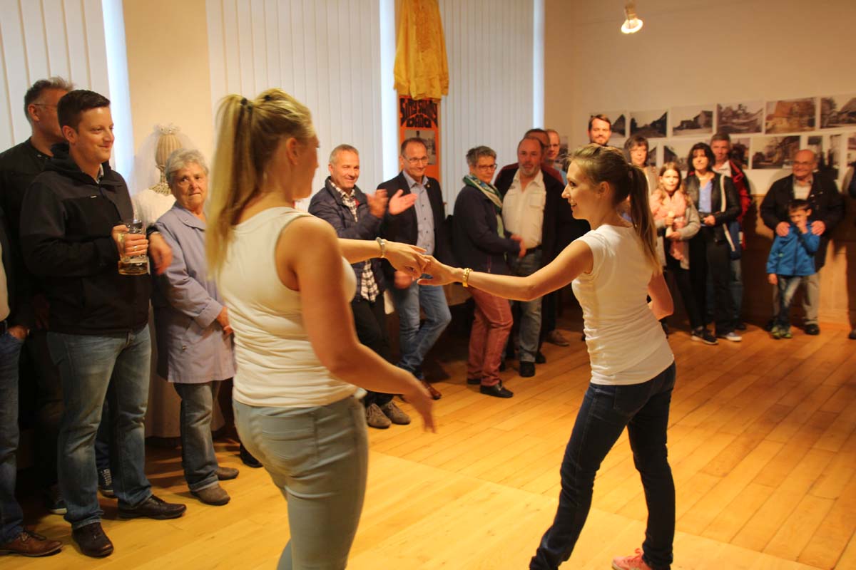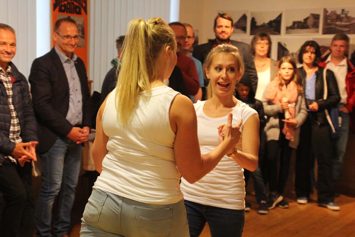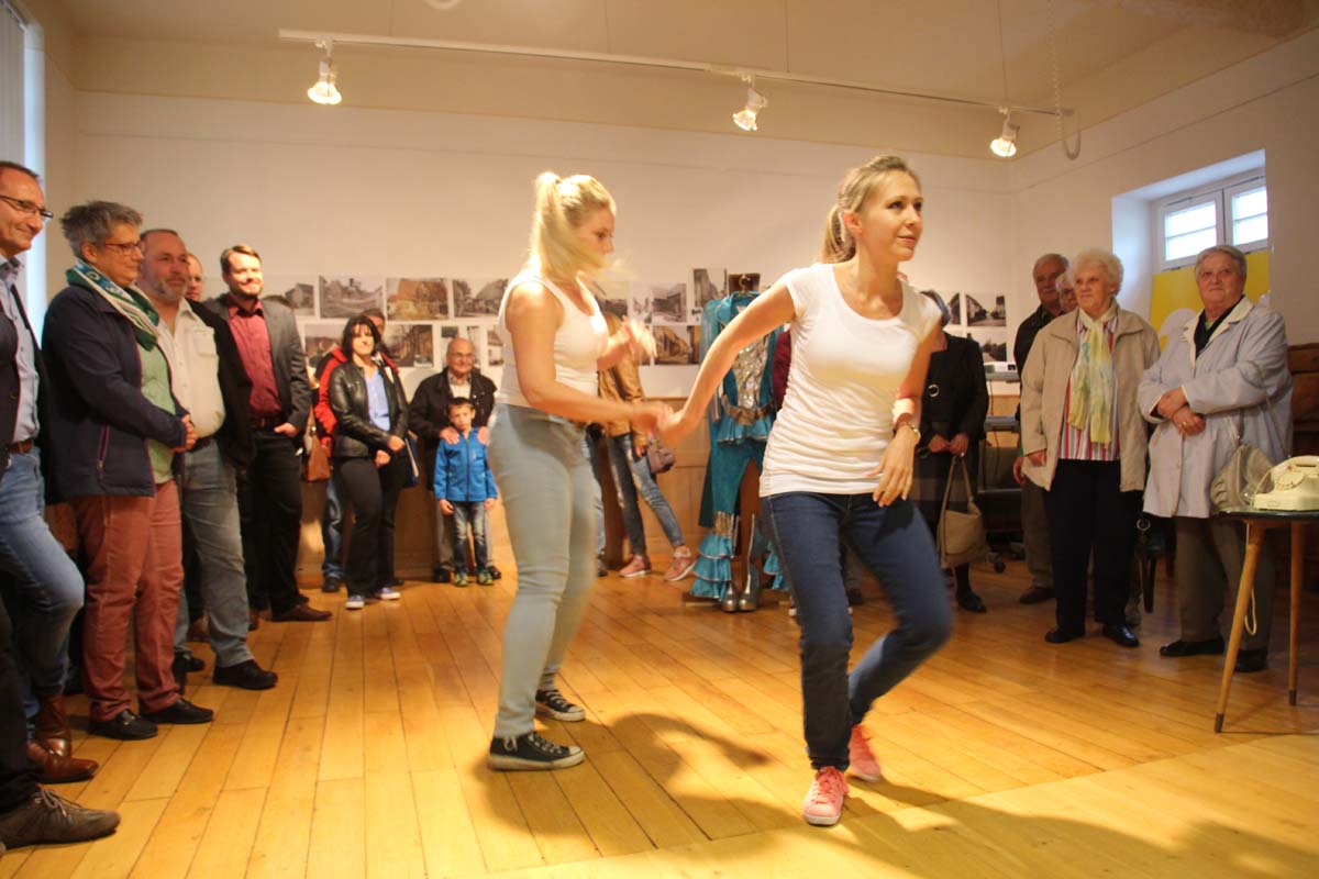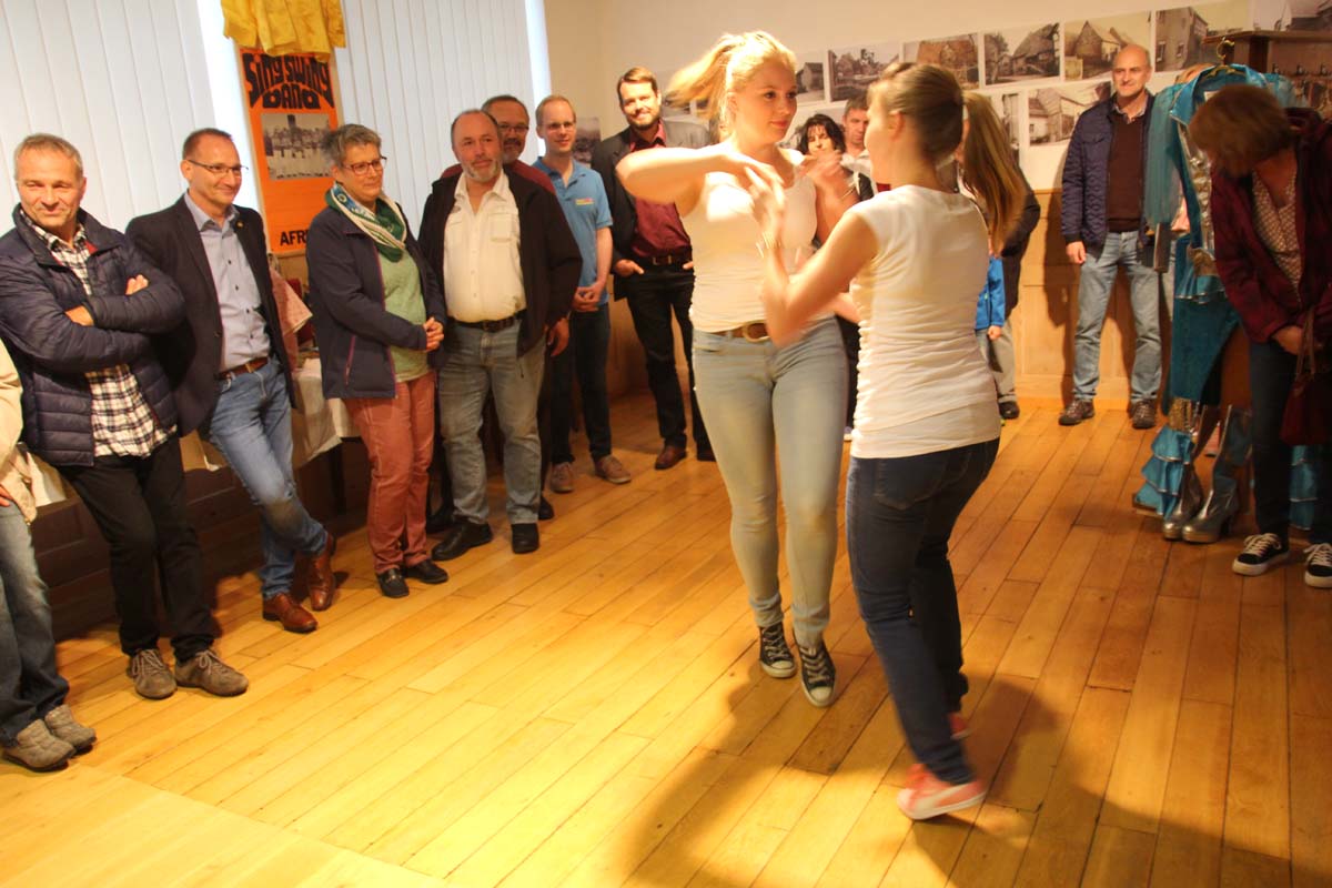 Danach ging es auf den Rundgang durch die Hilsbacher Kerwe. Hier wartete bereits der Hilsbacher Heimatverein mit ihrer Ausstellung „Rock`n Roll der 60er und 70er Jahre“. Zur Eröffnung gab es zur Einstimmung eine Showeinlage des Tanzcentrum Sinsheim mit Anna Stegmaier und Jana Kaltenbach.