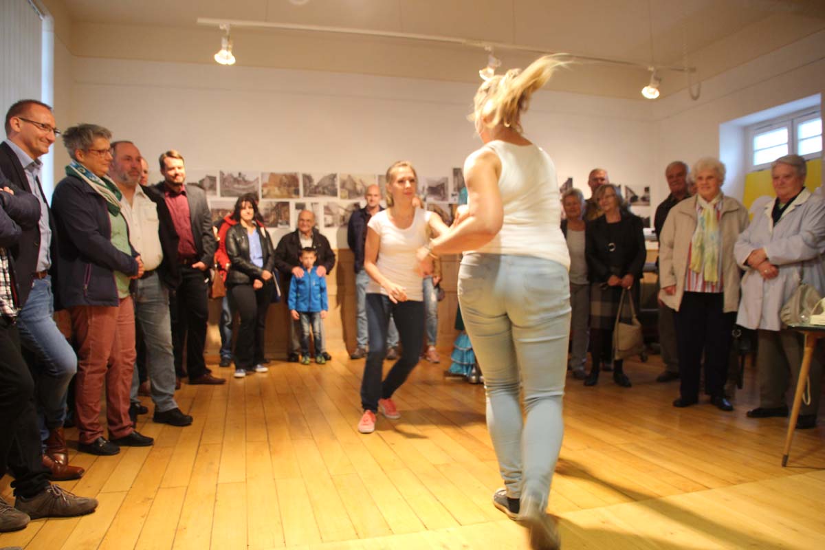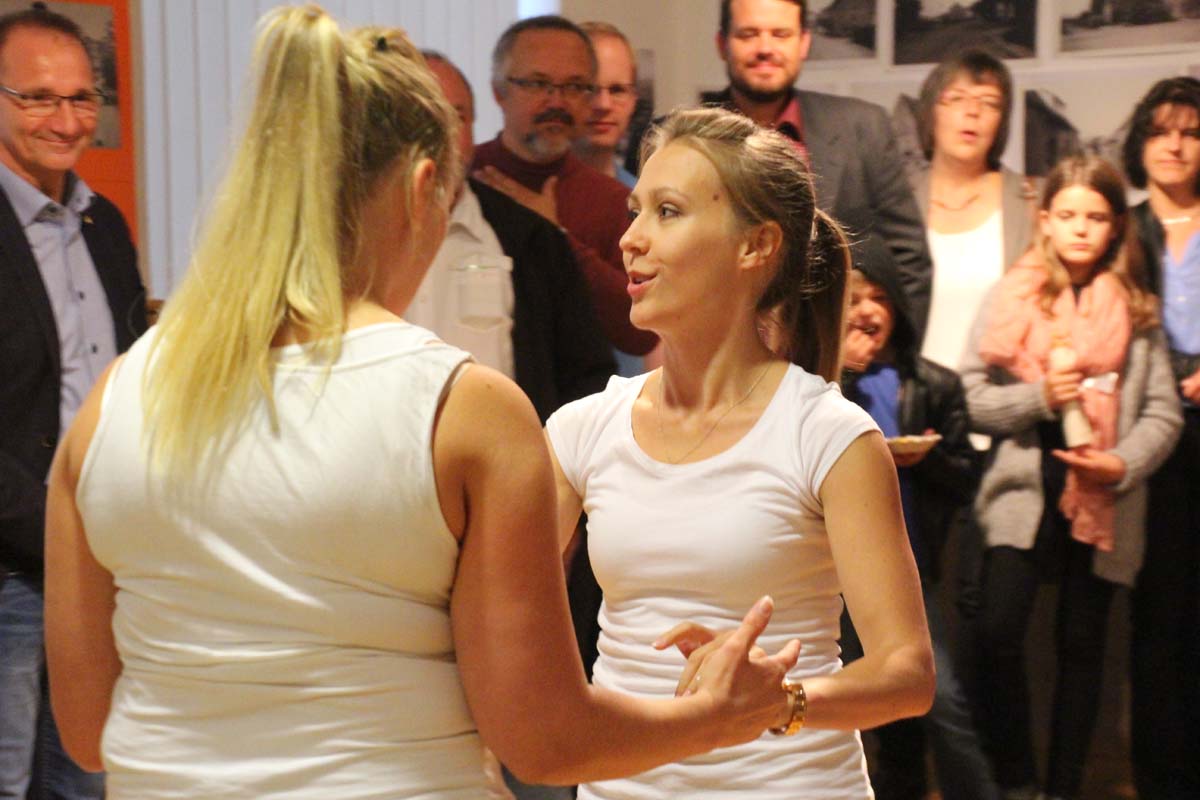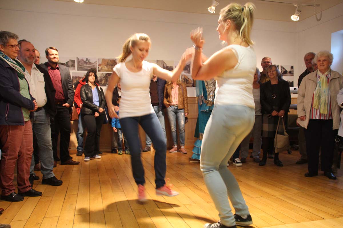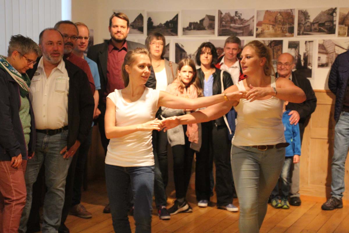 Danach ging es auf den Rundgang durch die Hilsbacher Kerwe. Hier wartete bereits der Hilsbacher Heimatverein mit ihrer Ausstellung „Rock`n Roll der 60er und 70er Jahre“. Zur Eröffnung gab es zur Einstimmung eine Showeinlage des Tanzcentrum Sinsheim mit Anna Stegmaier und Jana Kaltenbach.