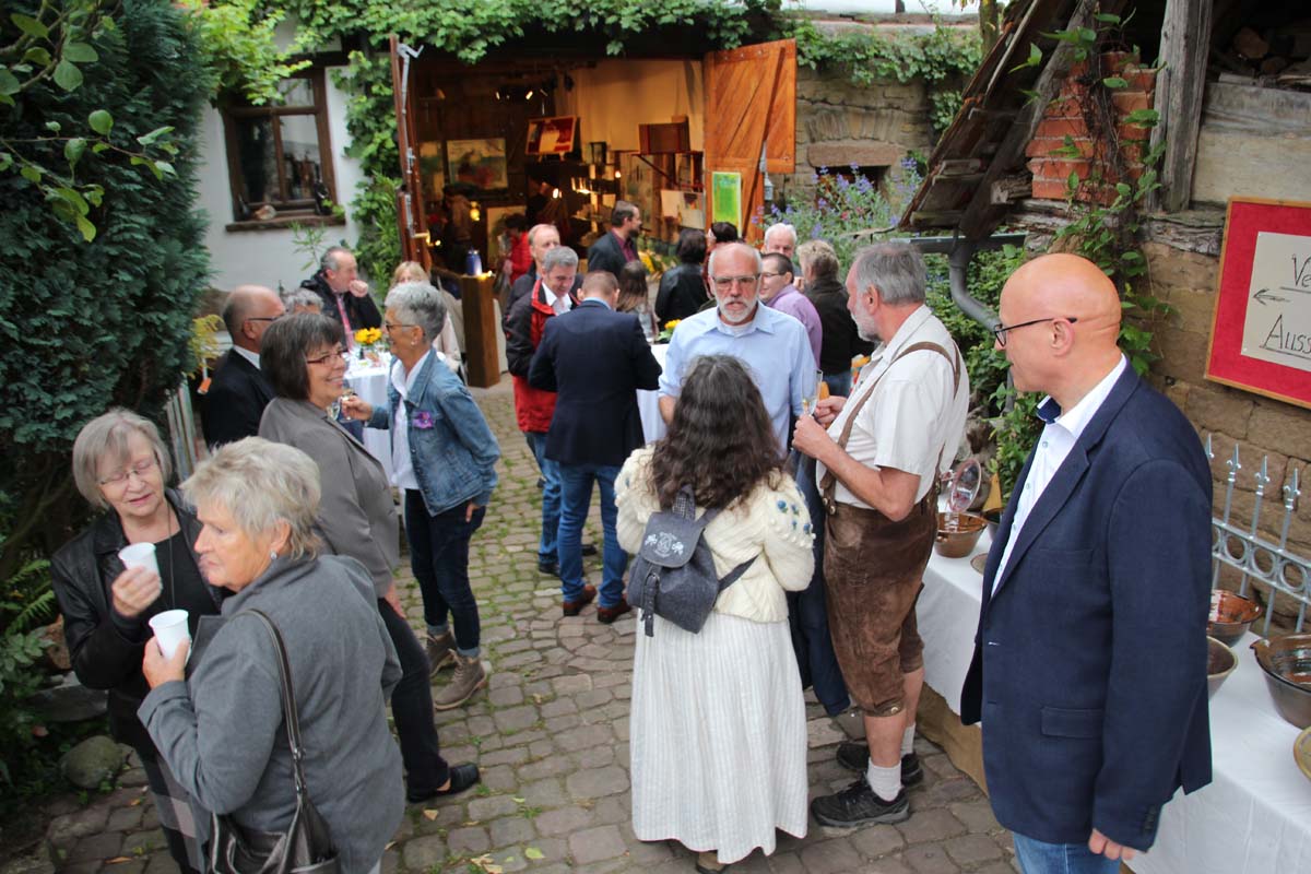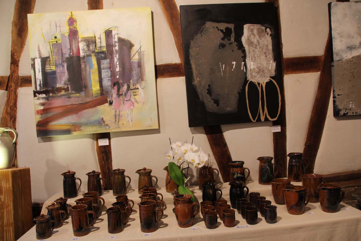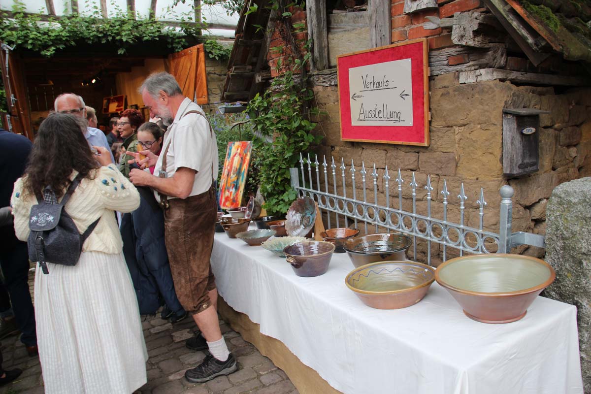 Bevor es dann zum feiern und schlemmen ging wurde auch in diesem Jahr wieder die Kunstausstellung eröffnet. In der Oberen Torgasse gab es wieder sehenswertes in diesem Jahr. „Ton und Acryl im Farbenspiel„ mit Bildern von Carmen Schön und Tonarbeiten von Friedhelm Knoch und „Kanne und Krug“ Kunsthandwerk von Friedhelm Knoch waren die Ausstellungstitel.