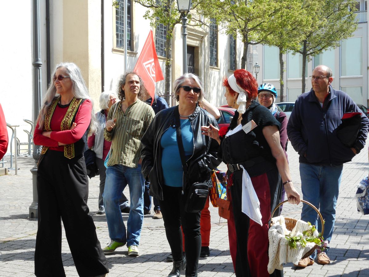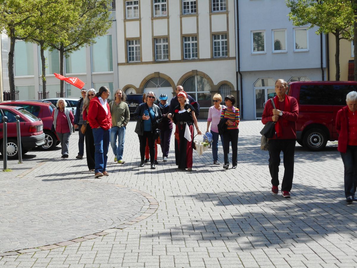 (zg) Im Gegensatz zu den großen 1. Mai-Veranstaltungen der DGB-Gewerkschaften war die historische Stadtführung mit der Sinsemer Marie eine „kleine edle Gruppe“, die den Ausführungen interessiert folgte. Es gab ja auch vieles über die Arbeitswelt in dem kleinen Städtchen von früher zu berichten, als auch von der Arbeitsplatzsituation in den letzten Jahren. Was früher zum Teil größte Knochenarbeit war, läßt sich mit der heutigen Zeit kaum noch vergleichen. Viele Firmen haben sich in Sinsheim und seinen Stadtteilen angesiedelt und tragen damit zu bescheidenem Wohlstand und einer niedrigen Arbeitslosenquote bei. Allerdings sei auch hier nicht zu verkennen, dass Gewerkschaften und Betriebsräte nicht besonders „geliebt“ werden.