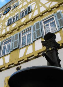 Heike Bastian hat sich kundig gemacht und berichtet in ihrer eineinhalbstündigen Stadtführung von Stiftsherren, Revolutionären und anderen Personen, die Sinsheim geprägt haben.