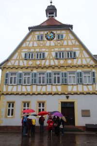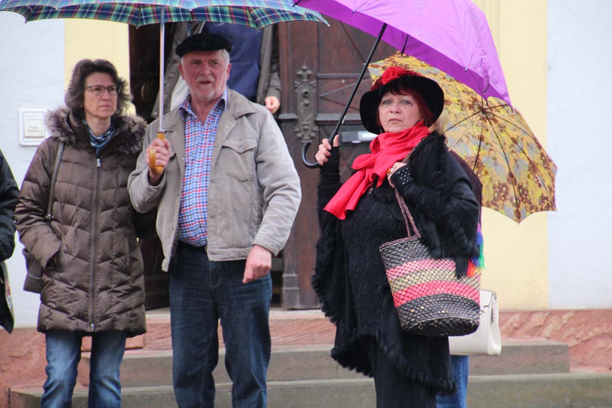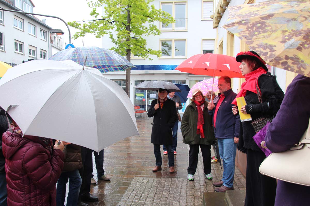 (zg) Die Geschichte der Arbeiterbewegung stand im Mittelpunkt einer Stadtführung von Monika Möhring alias „Marie von Sinse“. Trotz nasskalter Witterung am 1. Mai trafen sich etliche Hartgesottene vor dem Alten Rathaus in Sinsheim.