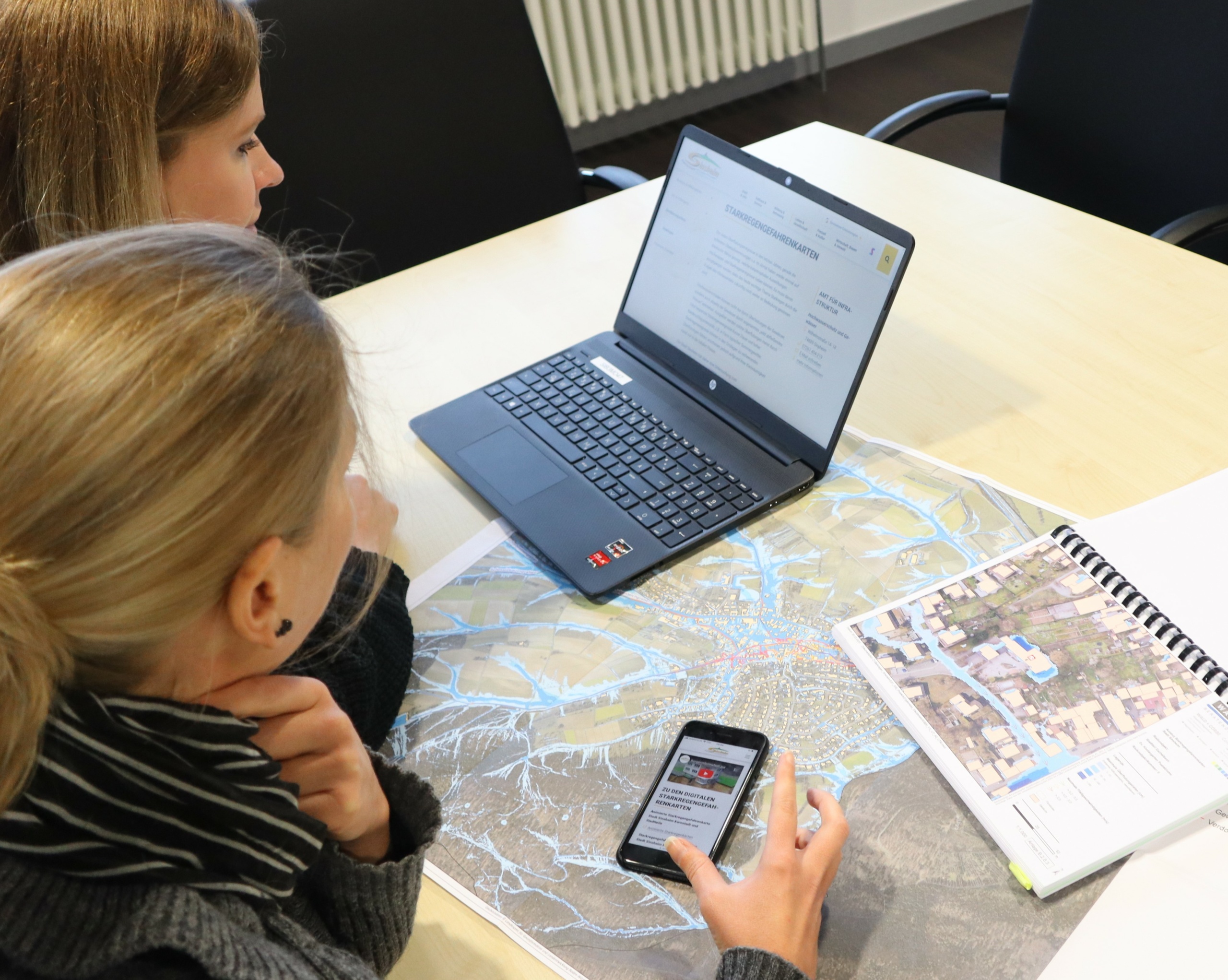Eine animierte Starkregengefahrenkarte zeigt die flächigen Ausdehnungen und Tiefen der Überflutungen sowie die tiefengemittelten Fließgeschwindigkeiten für drei verschiedenen Starkregenszenarien. Die Karte ist direkt unter www.starkregengefahr.de/baden-wuerttemberg/sinsheim abrufbar. Auf der städtischen Homepage ist die Karte unterwww.sinsheim.de/leben-gesellschaft/bevoelkerungsschutz/starkregen verlinkt. Hier finden sich außerdem weitergehende Informationen zu Hochwasser- und Starkregenereignissen, Starkregengefahrenkarten als PDF zum Download sowie hilfreiche Links. Auch der Informationsfilm zur Grundstücksentwässerung ist hier eingebettet.
