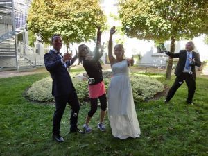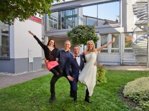Bei der standesamtlichen Trauung in Schwetzingen wurden die Eheleute, Janina und Thilo, von der Kindertanz -und Rock and Roll-Trainerin Piti überrascht und mussten trotz Hochzeitskleid und Anzug eine Rock and Roll-Abschlussakro zeigen.“