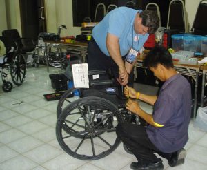 Bei der feierlichen Unterzeichnung des Kooperationsvertrages im Weißen Saal von Schloss Buchenauerhof würdigte die thailändische Delegation unter Leitung von Dr. Boonruang Triruangworawat (Generaldirektor für mentale Gesundheit des thailändischen Gesundheitsministeriums) das Rollstuhlprojekt im Nordthailändischen Chiang Mai und die vorbildliche Arbeit der Mitarbeiter aus Sinsheim. DMG-Mitarbeiter sind in diesem Projekt seit dessen Gründung vor 18 Jahren mit aktiv. Sie haben mehr als 10.000 gute gebrauchte Rollstühle, Gehhilfen und Prothesen an mittellose Menschen mit Behinderung verschenkt. Die gebrauchten Materialien kommen vorwiegend aus den USA und Deutschland und werden von Teams handwerklich begabter Freiwilliger (IJFD) der DMG in Chiang Mai vor Ort gereinigt, repariert und individuell an die Empfänger angepasst.