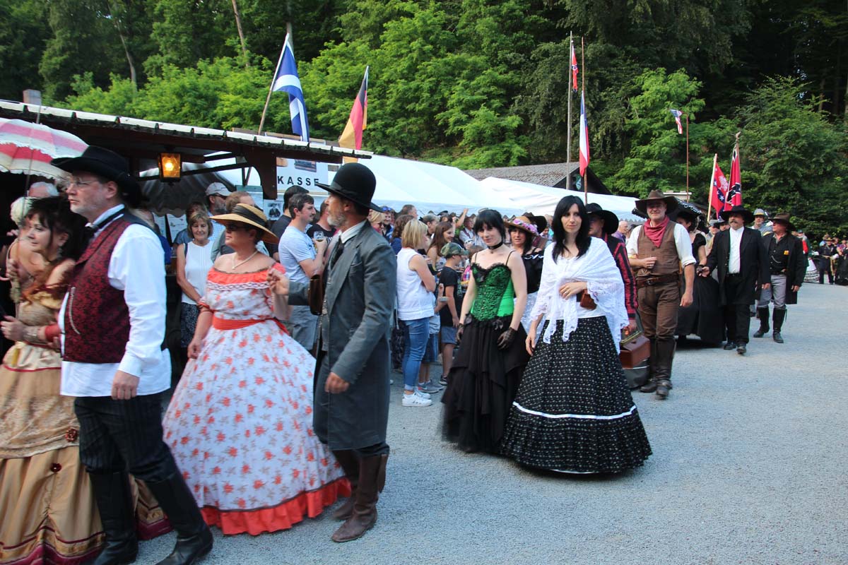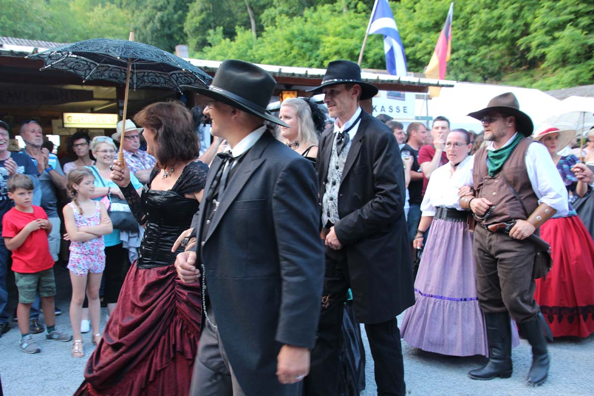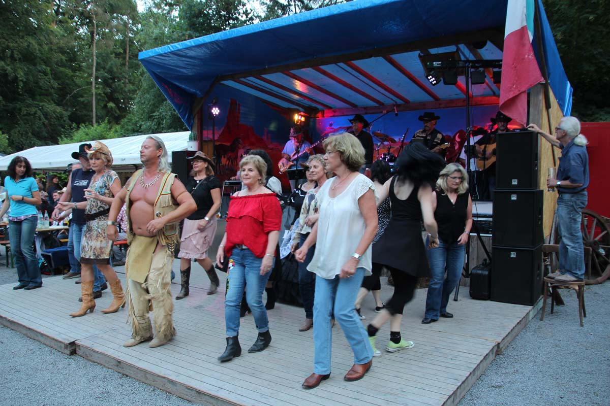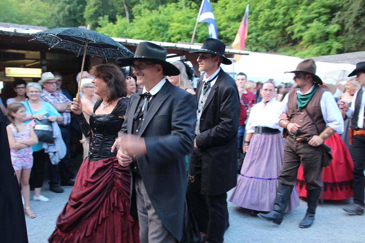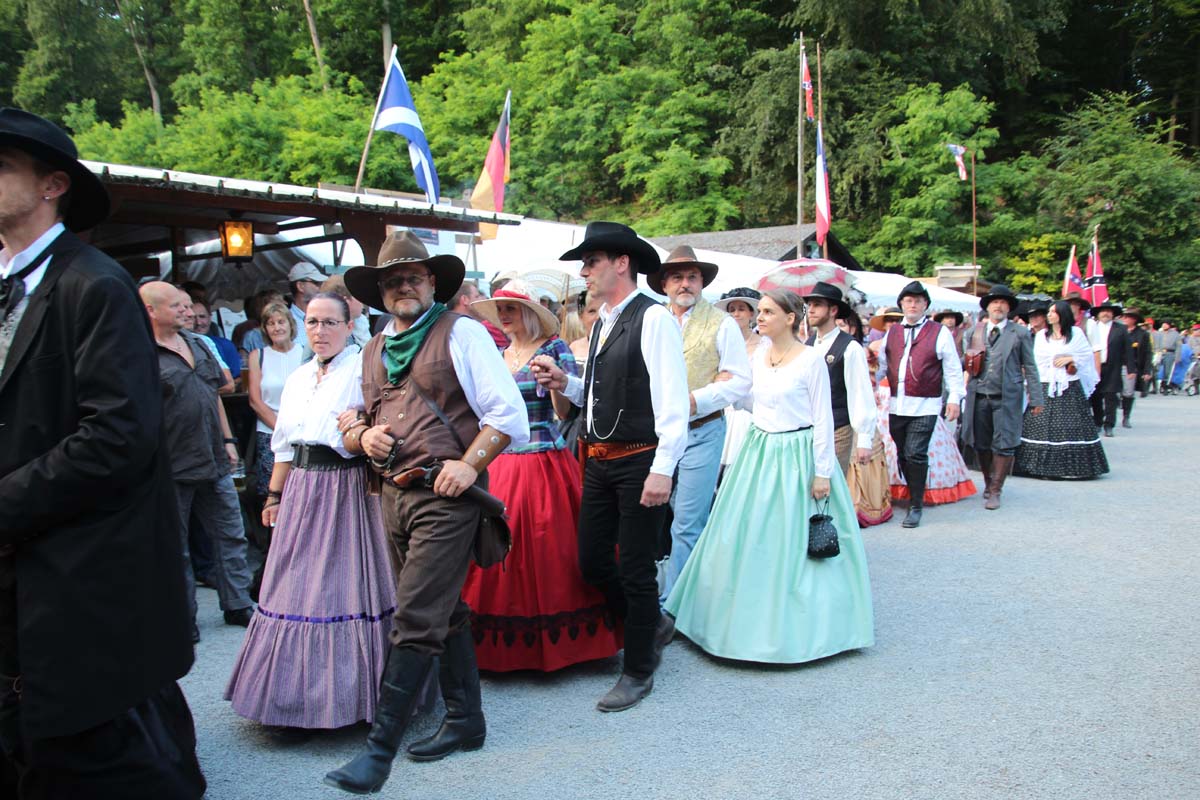 (cr) Einmal im Jahr verwandelt sich für zwei Tage das Gelände des Schützenvereins Diana in Eschelbach in ein kleines Westerndorf. Indianer, Trapper, Cowboys und Soldaten treffen hier friedlich aufeinander. Etwas ganz besonderes ist immer am Samstag die grosse Parade aller Beteiligten. Hier sieht man die prachtvollen Kleider der Damen und die originalgetreuen Kostume und Uniformen der Männer. In diesem Jahr gab es eine ehrenvolle Gedenkzeremonie für einen nicht mehr unter uns weilenden Kameraden. Für die musikalische Unterhaltung sorgt am Freitag wie üblich Rolf goes Country und am Samstag gab es beste Westernmusik von der Pete Stone Band. Das freute vorallem die vielen angereisten Line Dance Freunde. Die befreundeten Westernclubs schätzen hier in Eschelbach die kleine familiäre Atmosphäre und die tolle Organisation. Schön ist es auch zu sehen das hier die Eschelbacher Vereine Hand in Hand zusammenarbeiten.