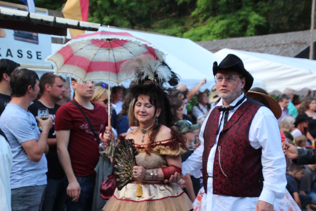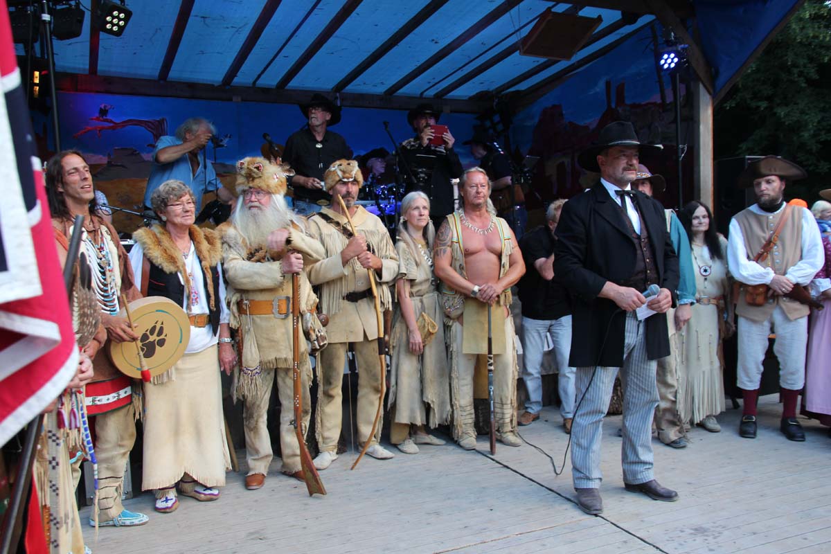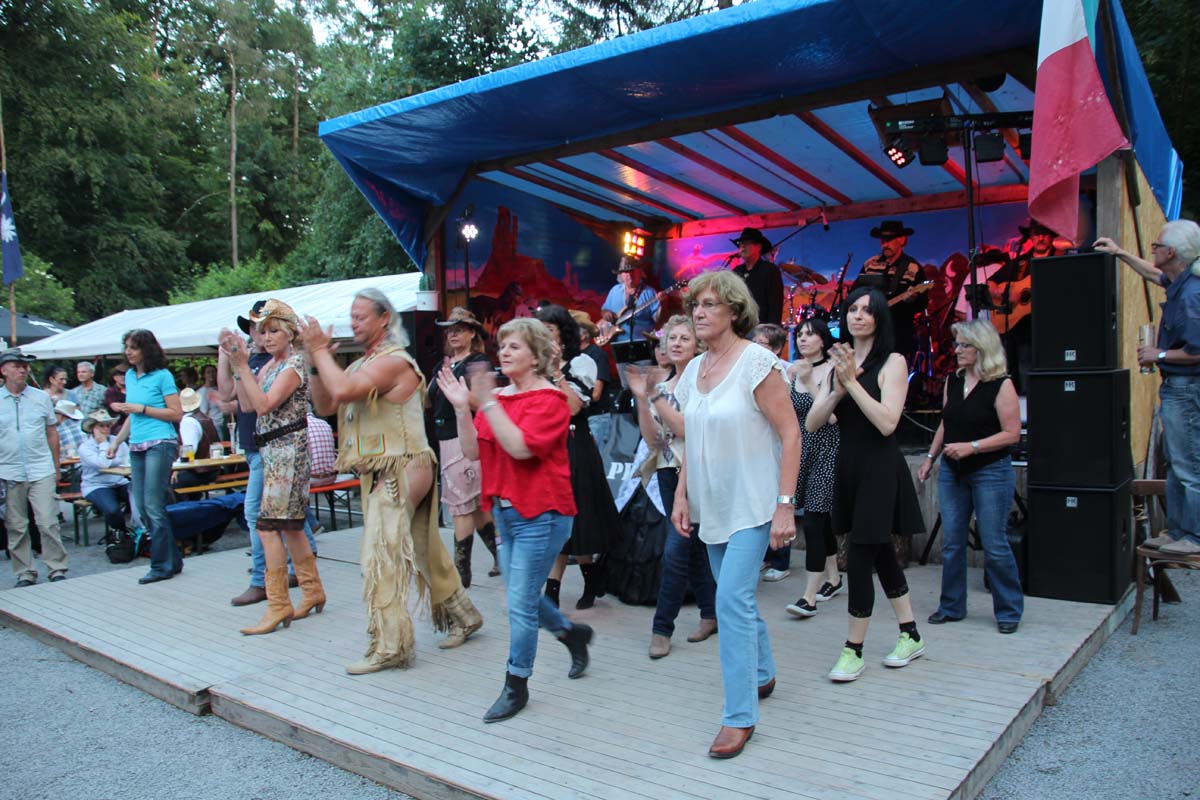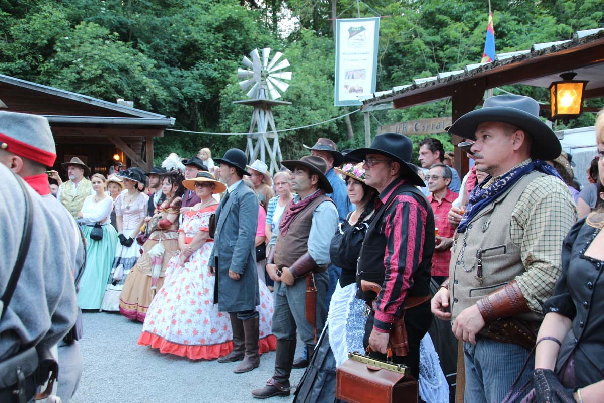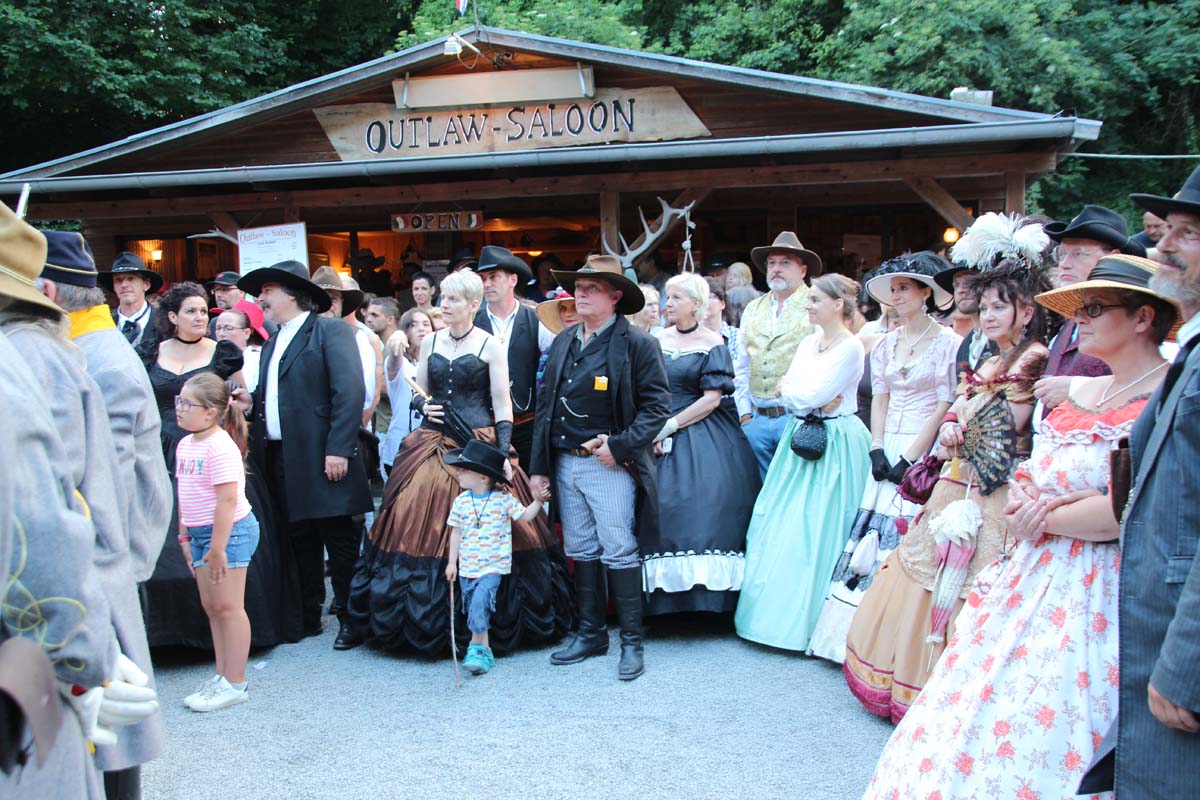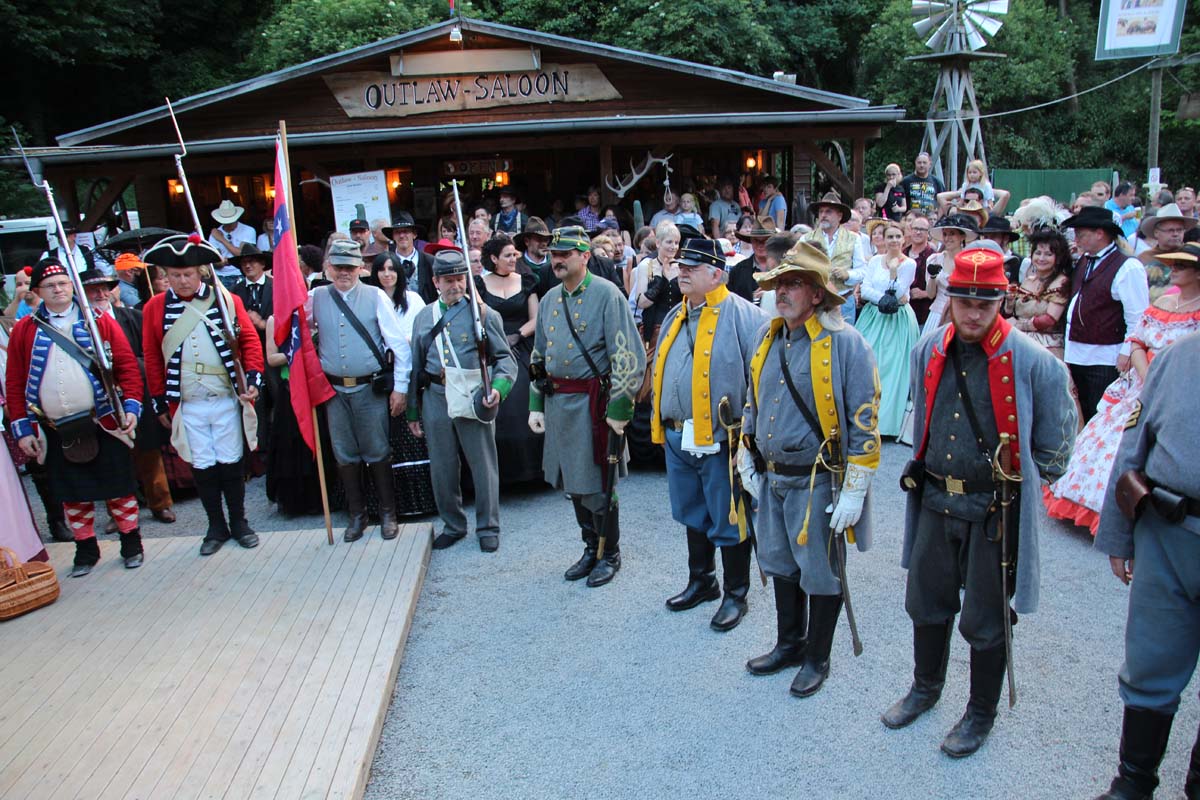 (cr) Einmal im Jahr verwandelt sich für zwei Tage das Gelände des Schützenvereins Diana in Eschelbach in ein kleines Westerndorf. Indianer, Trapper, Cowboys und Soldaten treffen hier friedlich aufeinander. Etwas ganz besonderes ist immer am Samstag die grosse Parade aller Beteiligten. Hier sieht man die prachtvollen Kleider der Damen und die originalgetreuen Kostume und Uniformen der Männer. In diesem Jahr gab es eine ehrenvolle Gedenkzeremonie für einen nicht mehr unter uns weilenden Kameraden. Für die musikalische Unterhaltung sorgt am Freitag wie üblich Rolf goes Country und am Samstag gab es beste Westernmusik von der Pete Stone Band. Das freute vorallem die vielen angereisten Line Dance Freunde. Die befreundeten Westernclubs schätzen hier in Eschelbach die kleine familiäre Atmosphäre und die tolle Organisation. Schön ist es auch zu sehen das hier die Eschelbacher Vereine Hand in Hand zusammenarbeiten.