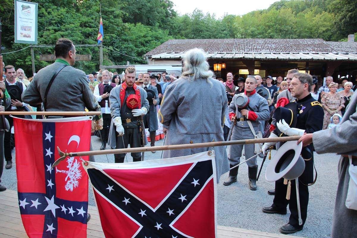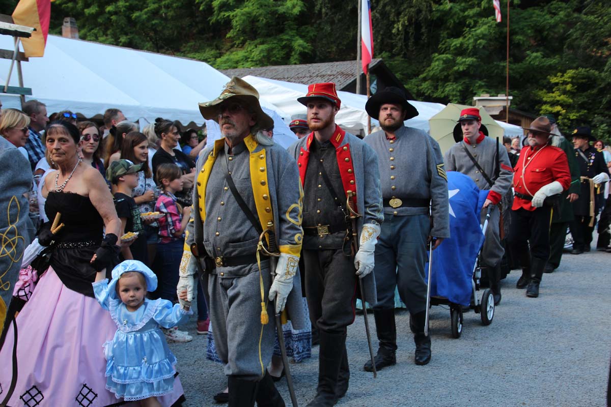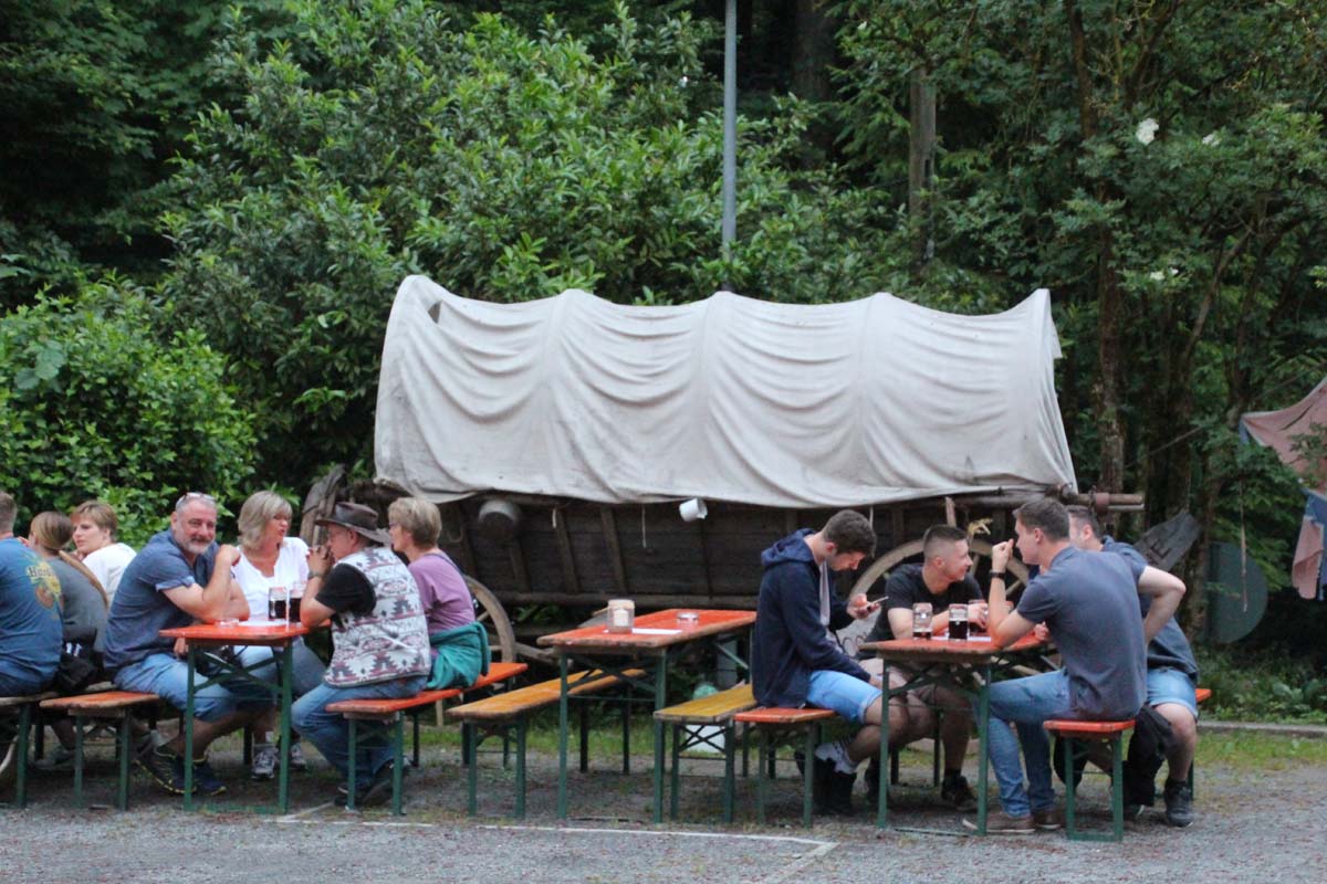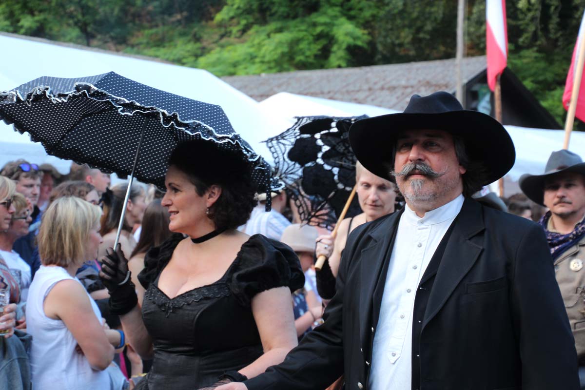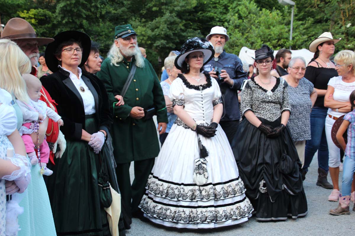 (cr) Einmal im Jahr verwandelt sich für zwei Tage das Gelände des Schützenvereins Diana in Eschelbach in ein kleines Westerndorf. Indianer, Trapper, Cowboys und Soldaten treffen hier friedlich aufeinander. Etwas ganz besonderes ist immer am Samstag die grosse Parade aller Beteiligten. Hier sieht man die prachtvollen Kleider der Damen und die originalgetreuen Kostume und Uniformen der Männer. In diesem Jahr gab es eine ehrenvolle Gedenkzeremonie für einen nicht mehr unter uns weilenden Kameraden. Für die musikalische Unterhaltung sorgt am Freitag wie üblich Rolf goes Country und am Samstag gab es beste Westernmusik von der Pete Stone Band. Das freute vorallem die vielen angereisten Line Dance Freunde. Die befreundeten Westernclubs schätzen hier in Eschelbach die kleine familiäre Atmosphäre und die tolle Organisation. Schön ist es auch zu sehen das hier die Eschelbacher Vereine Hand in Hand zusammenarbeiten.