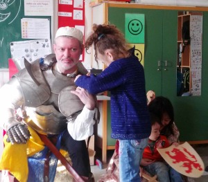 (zg) Im Hort der Carl-Orff-Schule, dessen Träger der Förderverein brücke e.V. ist, finden regelmäßig Praktikanten sozial-pädagogischer Fachschulen einen Praktikumsplatz, um einen Teil ihrer Ausbildung zu absolvieren. Der diesjährige Praktikant Jan Welz, der seine Ausbildung an der Albert-Schweitzer-Schule, Sinsheim erfährt, befasste sich mit dem Mittelalter – speziell mit den Rittern als Thema seiner Projektarbeit. Unterstützt und begleitet durch seine Praxisanleiterin Birgit Riesinger, sammelte er in Gesprächen mit den Kindern Ideen und Vorschläge für die Umsetzung des Projektes. Die Kinder erfuhren nicht nur Sachwissen über das Leben im Mittelalter, sondern konnten auch bei einer Exkursion auf die Burg Steinsberg, bei einem Rittermahl und einigen weiteren Aktivitäten hautnah diese Zeit nachempfinden. Den Höhepunkt des Projektes stellte der Besuch einer echten „Ritterfamilie“ dar. Einmal einen Ritterhelm tragen oder ein Schwert in den Händen halten, empfanden die Hortkinder als ein ganz besonderes Erlebnis. Beim Entkleiden des Ritters konnten die Kinder nachempfinden wie schwer doch so eine Rüstung ist. Diese Erfahrung ermöglichte der Mittelalterverein „Amici Ketz“ aus Ketsch, der die Hortkinder in der Schule besuchte und dem Frau Riesinger für den Besuch herzlich dankte. (Birgit Riesinger)