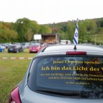 (zg) Mehr als 400 Gäste in circa 150 Fahrzeugen – vom Minicooper bis zum Camper – erlebten am Sonntag (17. Mai) das erste Auto-Missionsfest der DMG in ihrer Heimatzentrale Buchenauerhof bei Sinsheim. Zwei Gottesdienstfeiern, eine für Frühaufsteher, eine nachts für junge Christen, mit internationalem Flair, Impulsen aus anderen Ländern von Missionaren sowie Bibelarbeiten gingen der Frage nach: „Was ist bloß mit der Heimat los?“ Die DMG-Mitarbeiter glauben: „Es gibt eine Heimat bei Gott, die es zu entdecken gilt.“ Der Ton von der Bühne kam in bestem Audio übers UKW-Radio ins Fahrzeug. Gab’s das schonmal: Im Gottesdienst die Lautstärke selbst bestimmen und beim Mitsingen nicht auf die eigene Wirkung achten zu müssen? Es entwickelte sich eine eigentümliche Begeisterung. Mit Hupkonzerten feierten die Teilnehmer in den Autos den Lobpreis der Sinsheimer JuGo-Band mit.