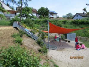 Ein Wipptier wurde ausgetauscht, die alte Sandkastenumrandung und die kaputte Rutschbahn entfernt. Dafür bekamen wir eine gebrauchte Rutschbahn, die bei unseren Kindern bereits sehr beliebt ist. So ging der Wechsel sehr schnell und wir sind froh gleich wieder eine Rutschbahn zu haben.